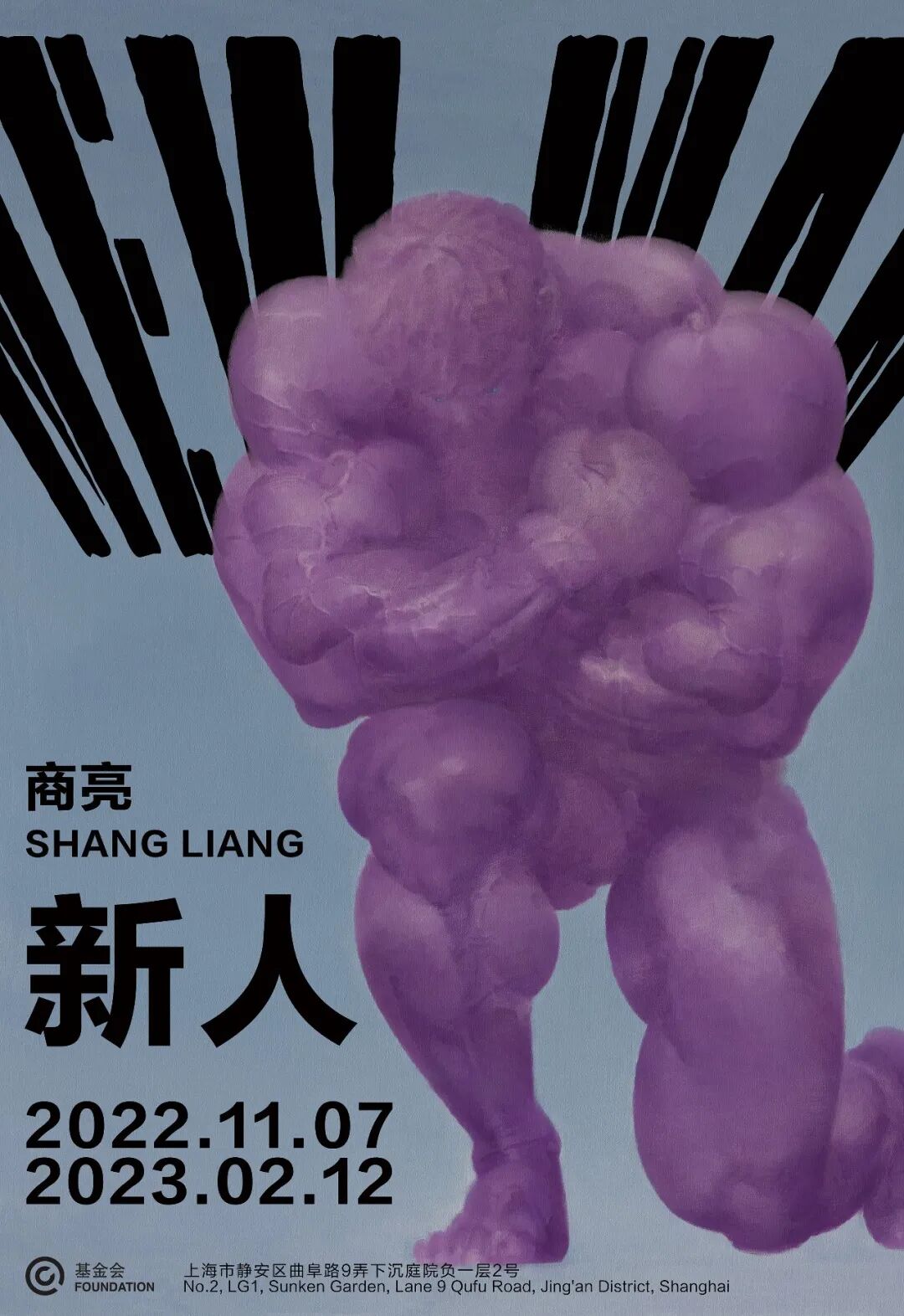 本次展览呈现了艺术家最新创作的绘画和雕塑作品,以其趣味独特的视觉符号,拆解关于身体、性别、亚文化的迷思,探索替代性的审美生产和身份建构的实践路径。艺术家通过长期耕耘的“好猎手” 、“拳击人”、“沙发人”等系列作品,塑造了肌肉变异的新人种形象。这一肌肉人形象可以理解为艺术家内省式的自我关照与投射,她将在本次展览中,继续以此“新人”为线索,探索后现代、后人类语境下身份选择和自我展示的自由。