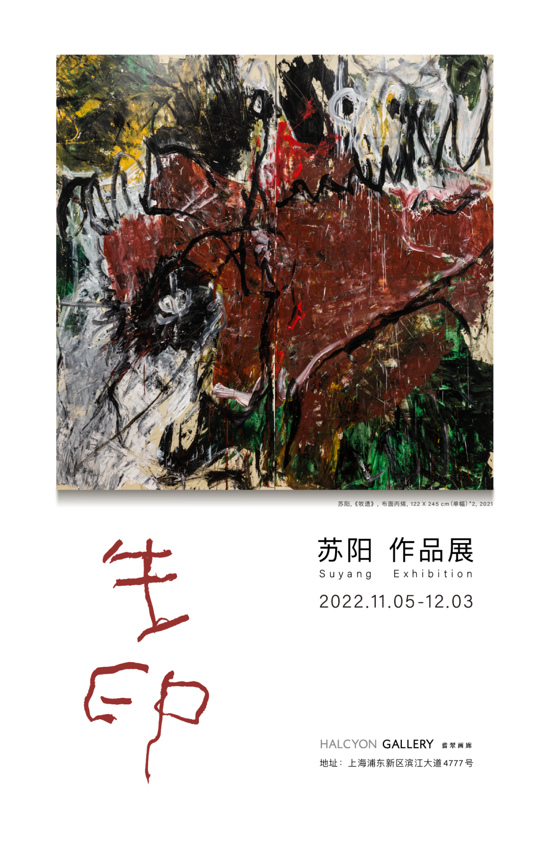 在此次展览中,共计呈现苏阳16件布面油画、34件综合媒材作品,以及数件影像作品和全新油笔系列作品。