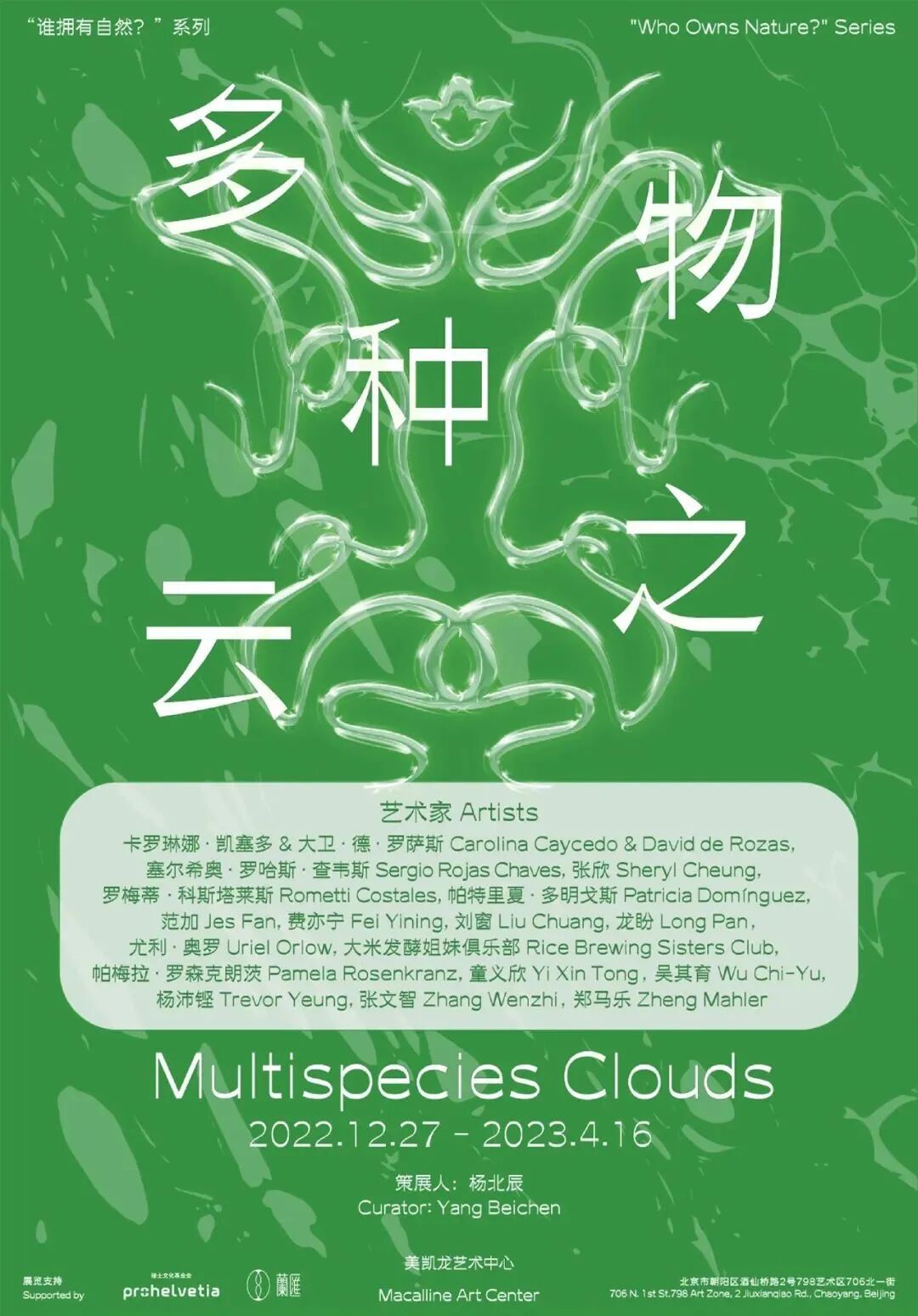 多物种之云是美凯龙艺术中心规划的“谁拥有自然”研究性系列展览的第一章。展览试图呈现一则关于新型物种间的隐喻,其一方面指向了不同生命形式间形成的网络结构,另一面亦涉及一个全球性的交换系统,于其中人类世时代的物种以近乎信息、物质与能量的方式流动。