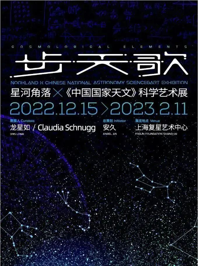 “步天歌”展览是星河角落  x 《中国国家天文》首个官方科学艺术展,也是上海复星艺术中心2022跨年大展,策划与收集作品历时3年,近10个国家、30位跨媒介科学家、艺术家、音乐人与所有观展人共享浩瀚星辰、共同思索人与宇宙的深层链接。“步天”是一种人身坐标和宇宙坐标之间的动态关系,也是展览重要的概念起点——不论我们对宇宙的认知经历过多少观测与探测技术的革命,我们自身仍然是极为重要的媒介。