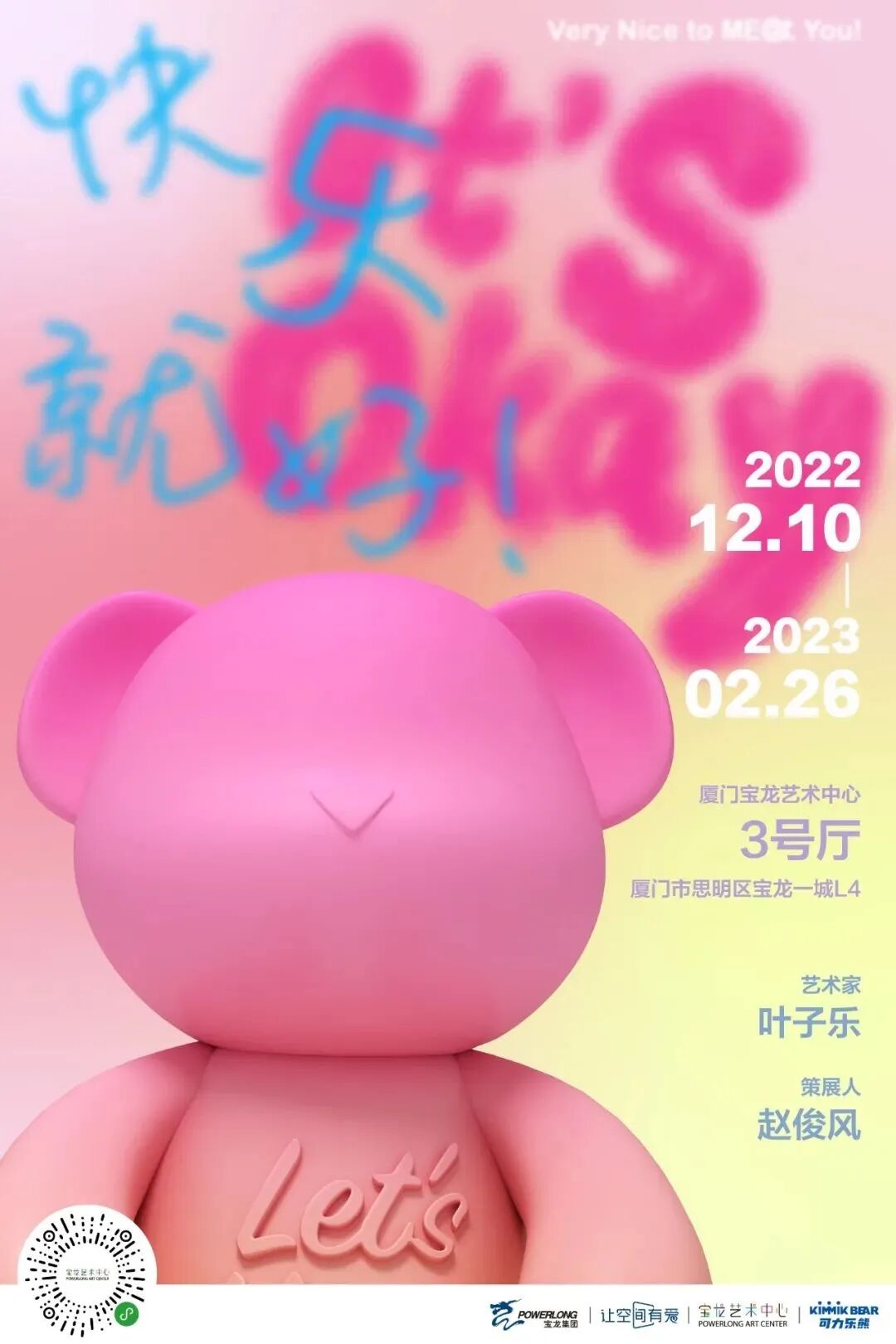 此次展览较为完整地呈现了艺术家叶子乐的近期新作,其中将以“你好,可力乐熊”、“宅家冒险家”、“再见孤独巷”、“大概率是天秤座”、“出其不意的结局”、“快乐就好屋”和“小熊旅行日记——那年夏天”等七个章节,邀请大家进入五彩斑斓的可力乐熊世界,了解其背后诞生和成长的故事。