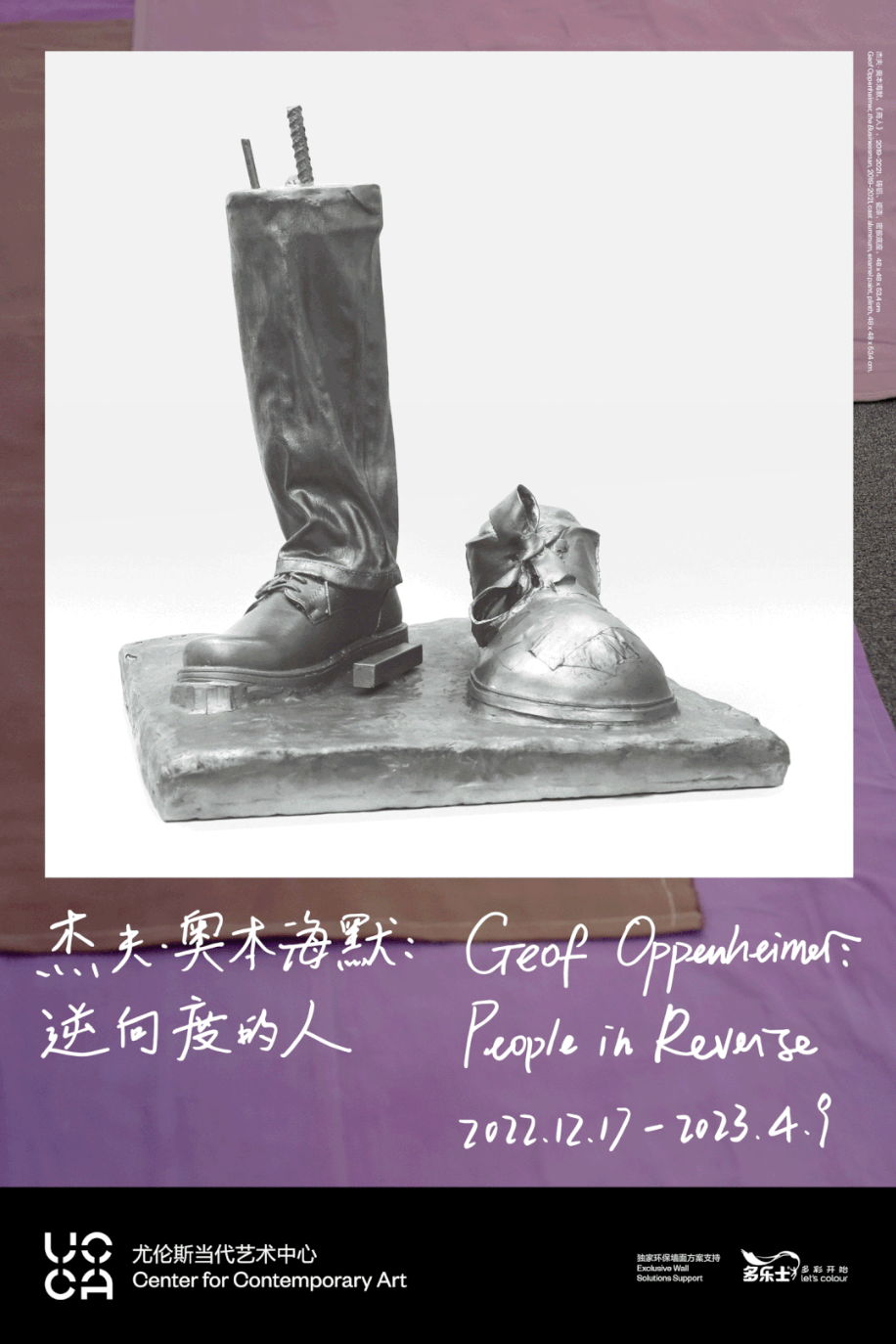 展览是杰夫·奥本海默在中国举办的首次个展。重点呈现的三件铸铜与铸铝雕塑分别代表当代社会中三个重要的角色原型:商人、旗手和观察者。与此同时,各类原材料、批量生产的物品与曝露在外的搭建结构借用了日常公共空间的材料语言。这些象征着工业生产的物件与手工制作的雕塑作品彼此映衬,凸显出当今商品经济机制的内在张力。