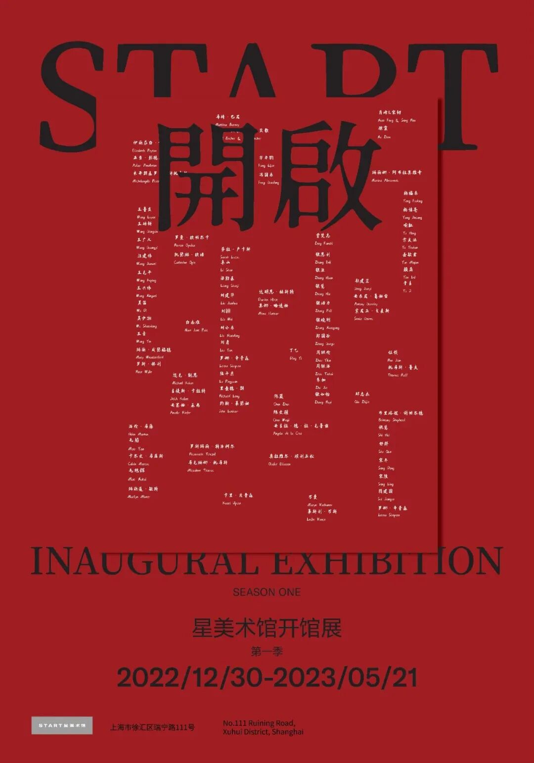 开馆展“开启START” 由创办人、馆长何炬星先生领衔的策展团队精心布局,其成员多为跟随该馆筹备多年的研究专家。整场展览由85名(组)艺术家、88件作品组成,这些艺术家中最年长的生于1921年,最年轻的生于1988年。艺术家地籍分布包括中国、韩国、印度、美国、丹麦、巴西、英国、法国、意大利、德国、比利时、保加利亚、塞尔维亚等,涵盖了国际当代艺术最具时代性和代表性的一批艺术家。