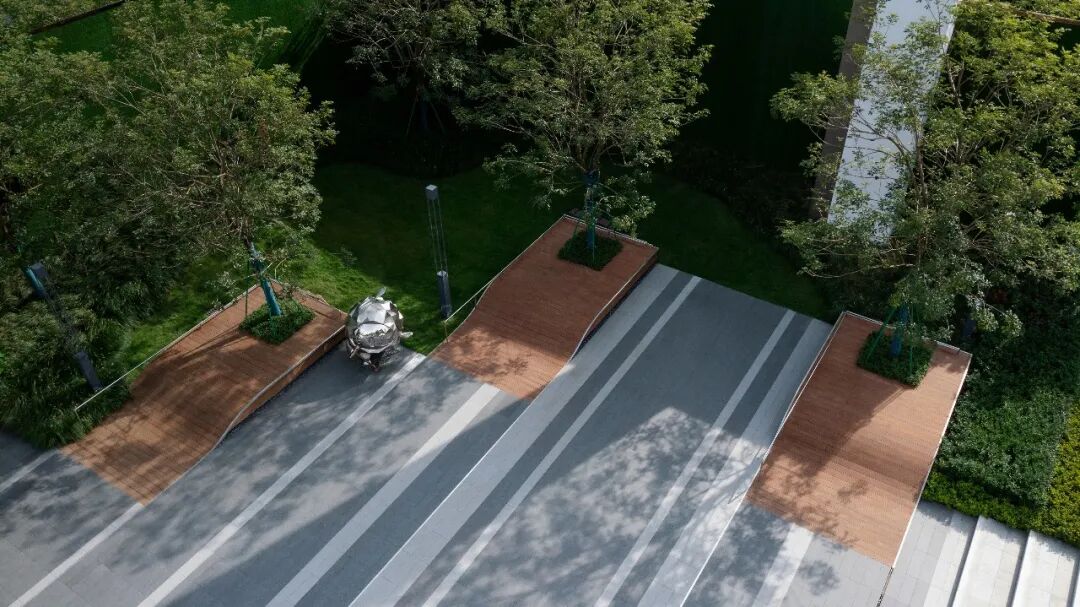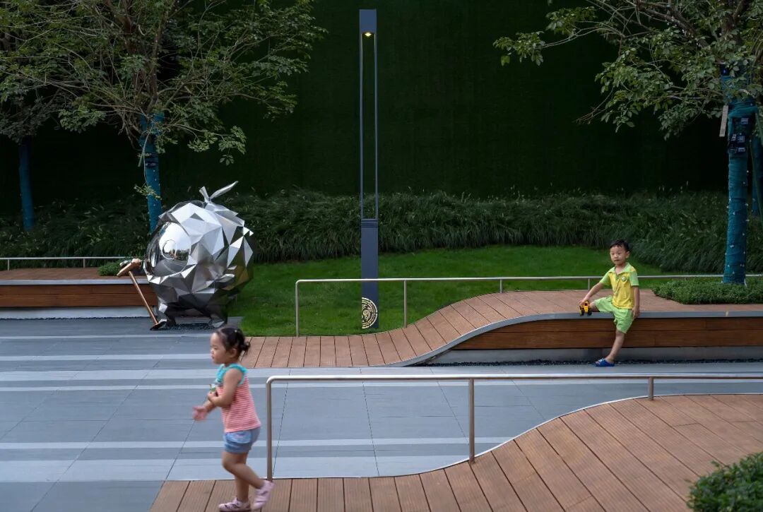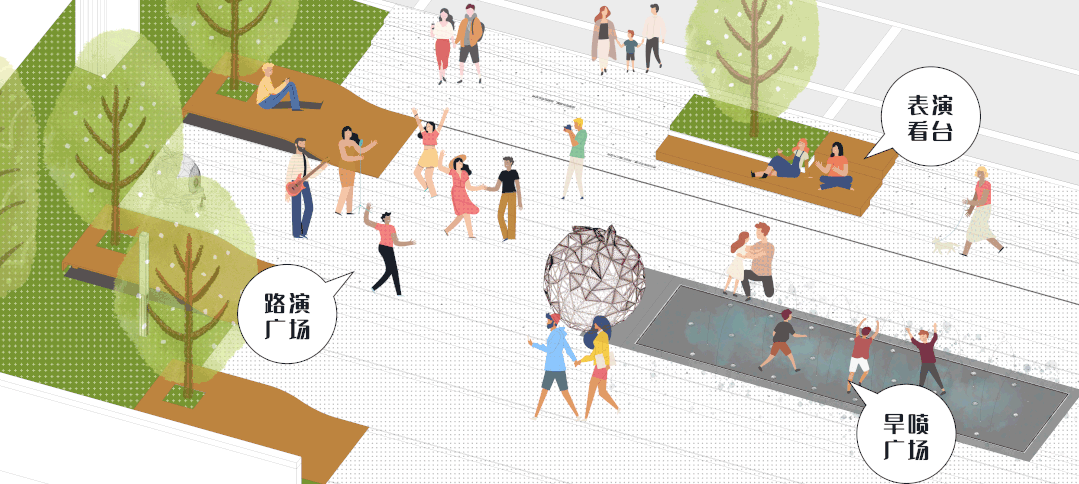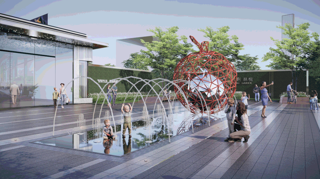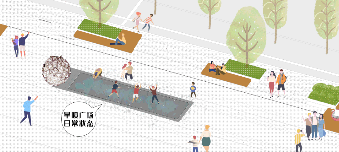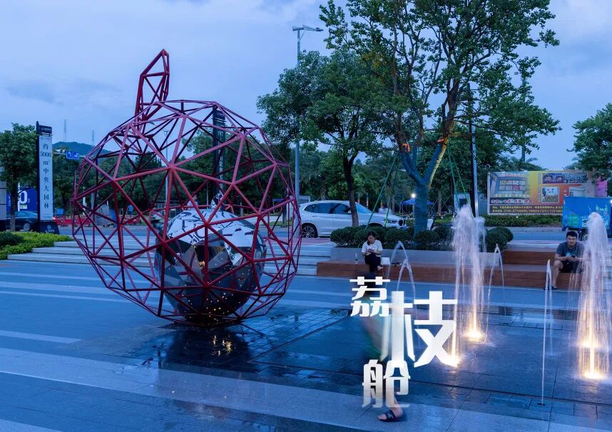 为了让下凹的建筑在城市界面的形象感更强烈,旱喷广场融入了“大荔枝”的城市艺术雕塑,为场地增添了熟悉的生活记忆。