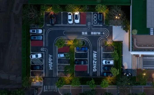 以荔枝红为专属色,融入荔枝FM的画面,是我们希望人群进入停车区开始,情绪就能被带动激发,感受到惊喜与美好。
