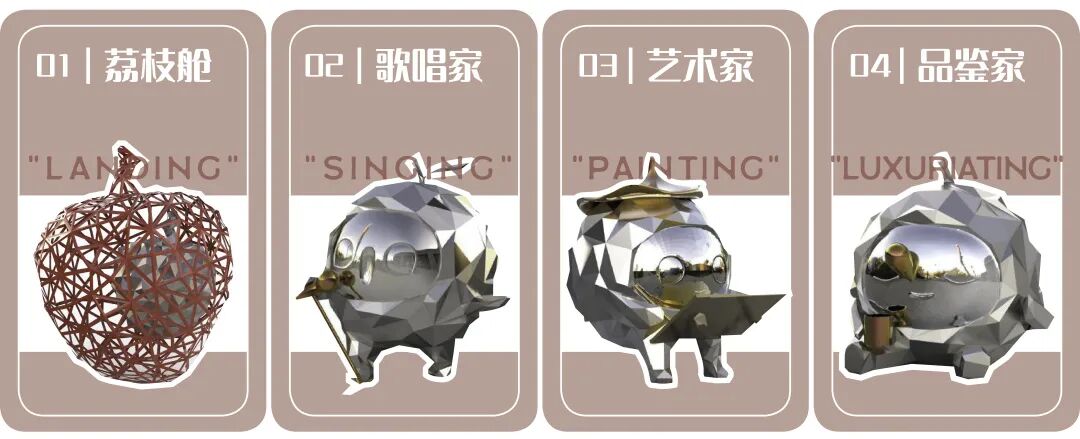 我们希望通过荔枝文化的输入,让场地与当地人形成情感共鸣,同时达到地域文化输出的效应,尝试融合荔枝元素,设计一系列趣味主题IP, 散落在场地各处,以开放性姿态迎接城市人群的到来。