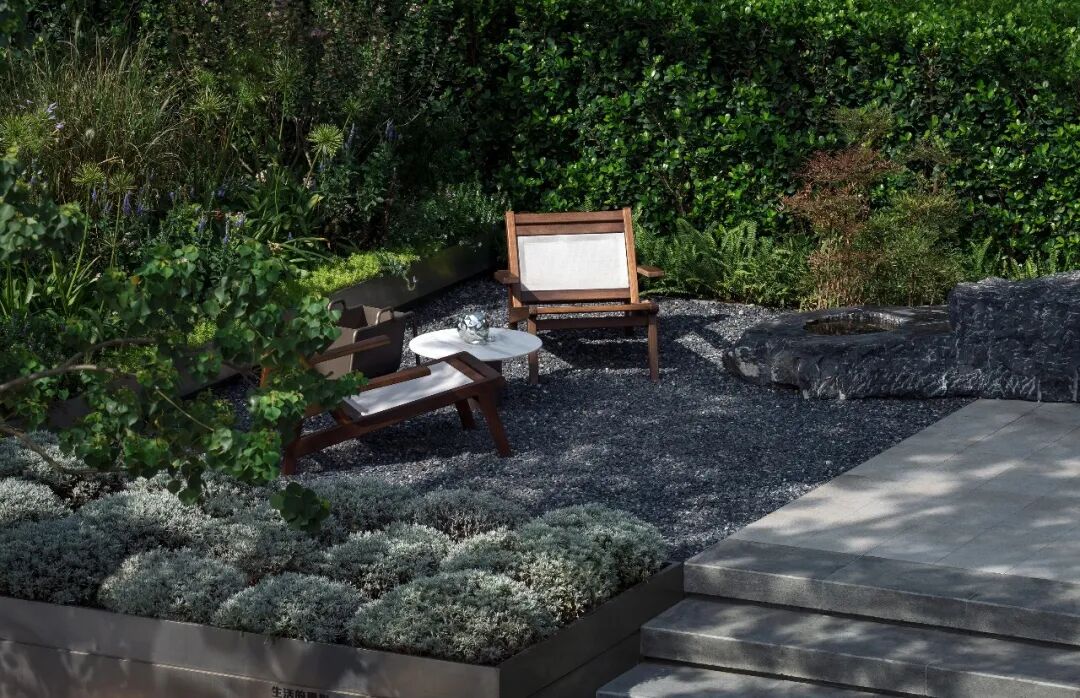 茶歇小院是停车场进入场地后看到的第一个对景空间,我们希望人群一进来就能放松下来,以好友对坐树下,点石,茶歇为景。