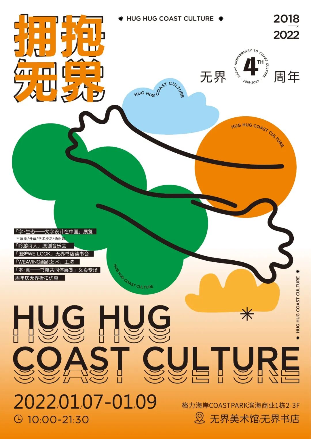 自1月7日起,无界以“拥抱·无界”为主题开展艺术展览、学术沙龙、工作坊、音乐会、读书会等系列周年庆活动,多彩的活动如同一首成长的诗,它可以躁动肆意,挥洒蓬勃热情,也可以静谧如诗,在喧嚣中寻一处心灵的自在。
