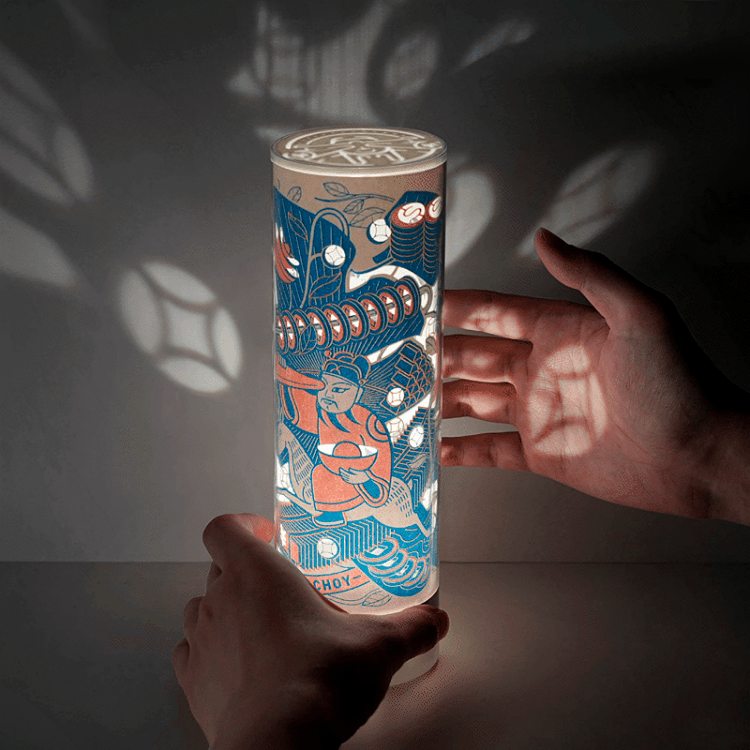 滚筒画面致敬民间木刻,采用当代设计语言形成年轻人更喜欢的新潮图样。器物操作更便捷易用,各种玩法,增添岁时玩闹喜悦。礼盒中还配了滚印专材料,让用户亲手滚印利是封或明信片。
