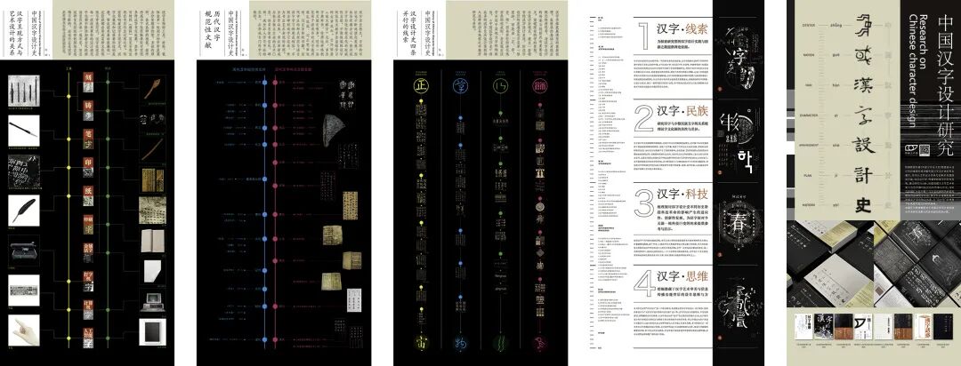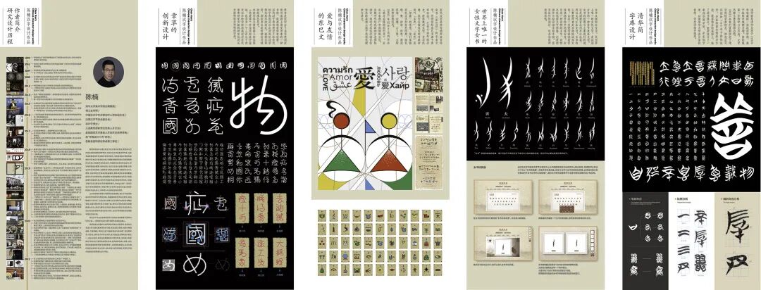 本展区为陈楠教授关于中国汉字设计史的相关学术研究成果与他的汉字设计作品的视觉分享,从而传递研究型设计所提倡的学术研究与设计实践知行合一的工作状态。