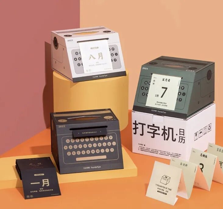 以打字机日历的创意造型为载体,365天,每天展示一款字体。