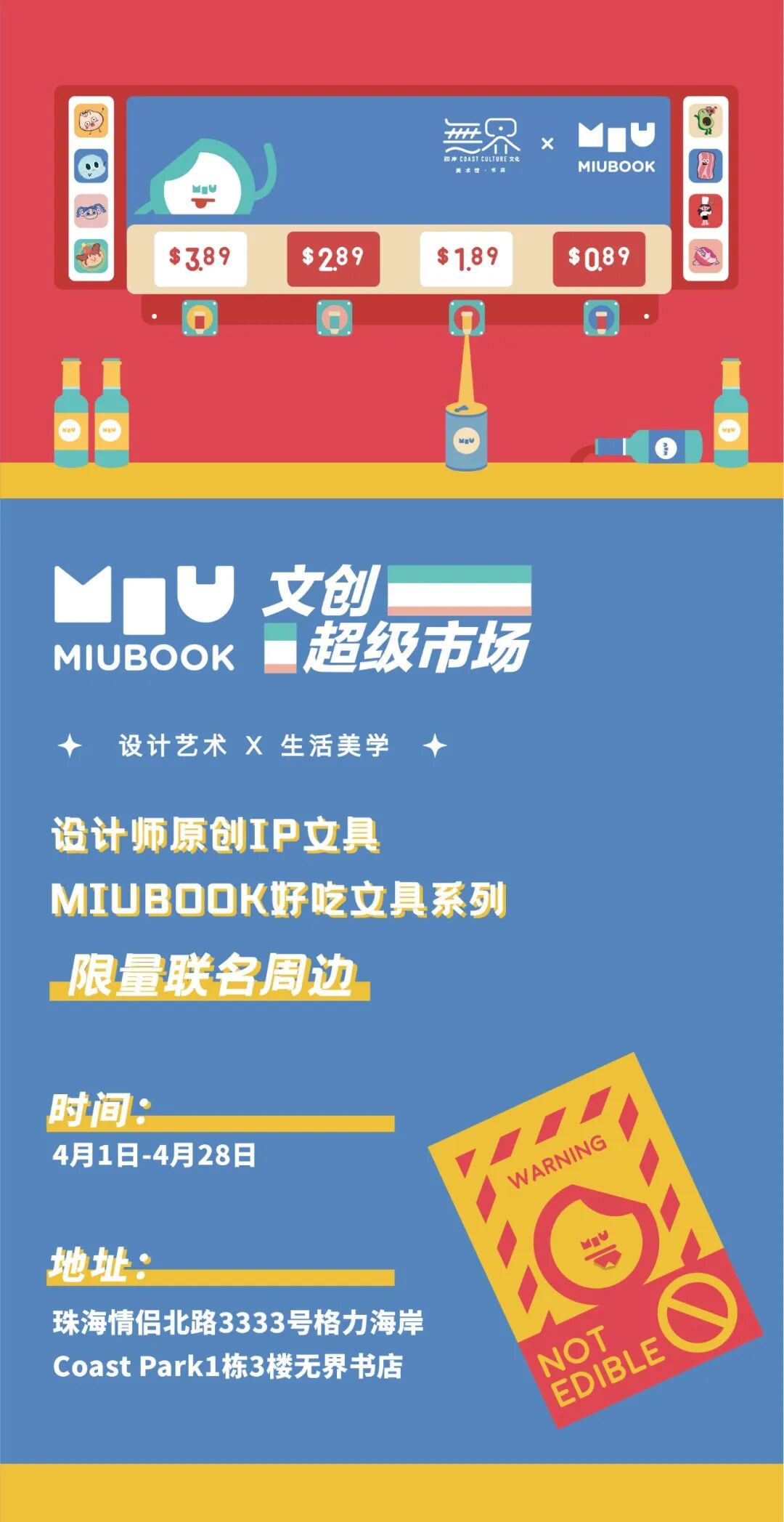 4月1日至28日,在无界书店这一方临海的阅读空间,“无界×MIUBOOK文创超级市场”将带领大家漫游潮流IP的色彩的王国。书之想象、传播、创造理念,加上文创之实物表现,呈现生活无数种美好。