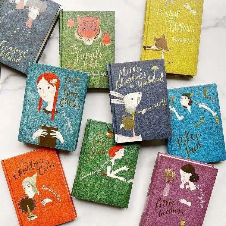 插画师Liz Catchpole 从V&A博物馆中选取了一些Morris的作品花型并加以艺术插画创作。这个系列共包括9部经典作品:《秘密花园》《柳林风声》《绿山墙的安妮》《爱丽丝漫游仙境》《小妇人》等。每一个封面都有非常漂亮特殊的工艺和布纹手感。