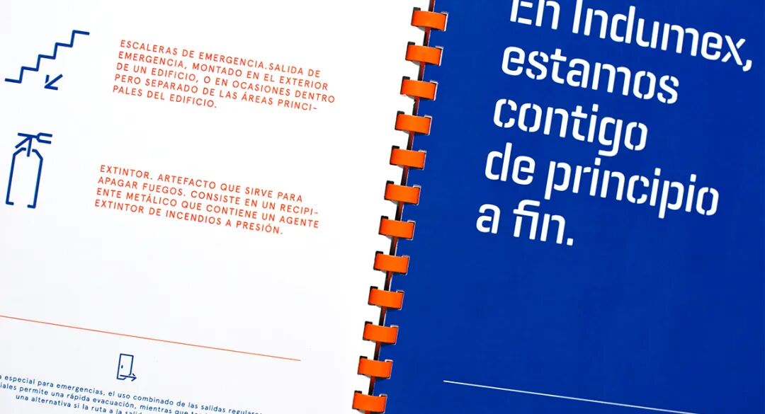 VI设计与品牌形象设计通过强烈的颜色对比,强调Indumex在市场上的创新。蓝色描绘了信任,而橙色显示出勇气。我们为字标设计了自定义排版,并为其他应用选择了一个直接的字体来描绘品牌的工业方面。
