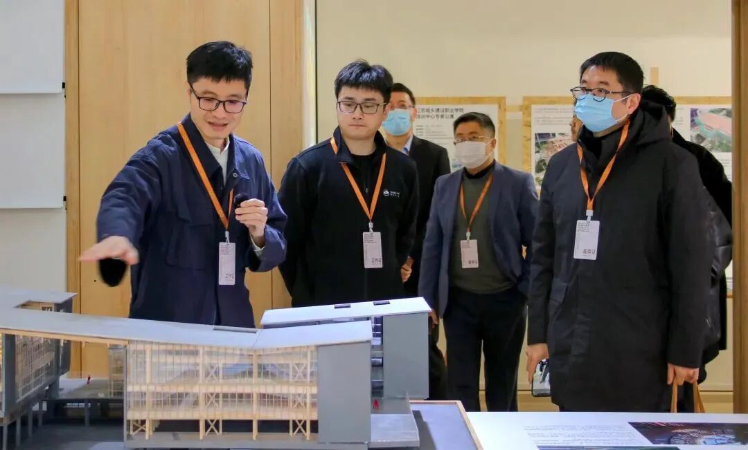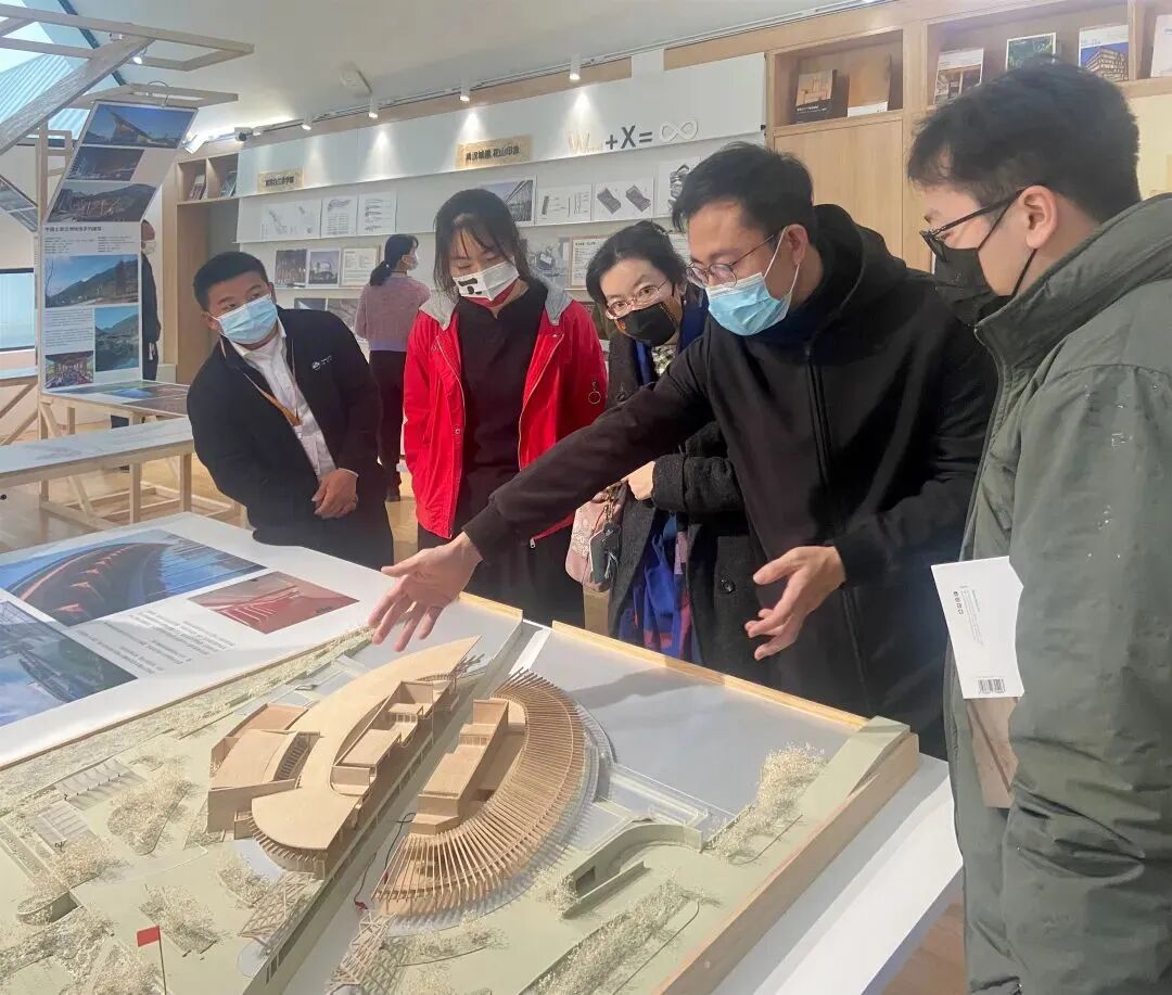 ▲工作人员讲解汤桦建筑设计事务所的天府国际会议中心项目