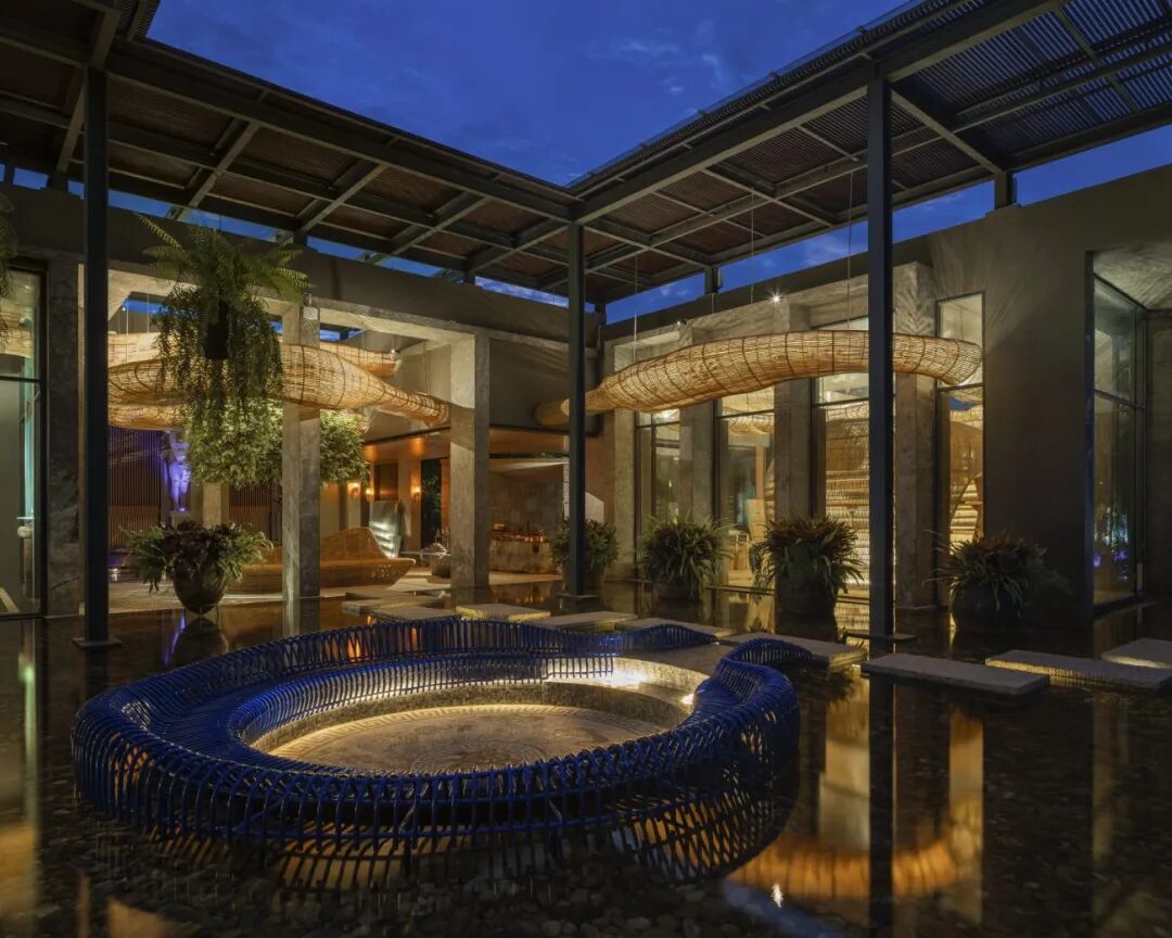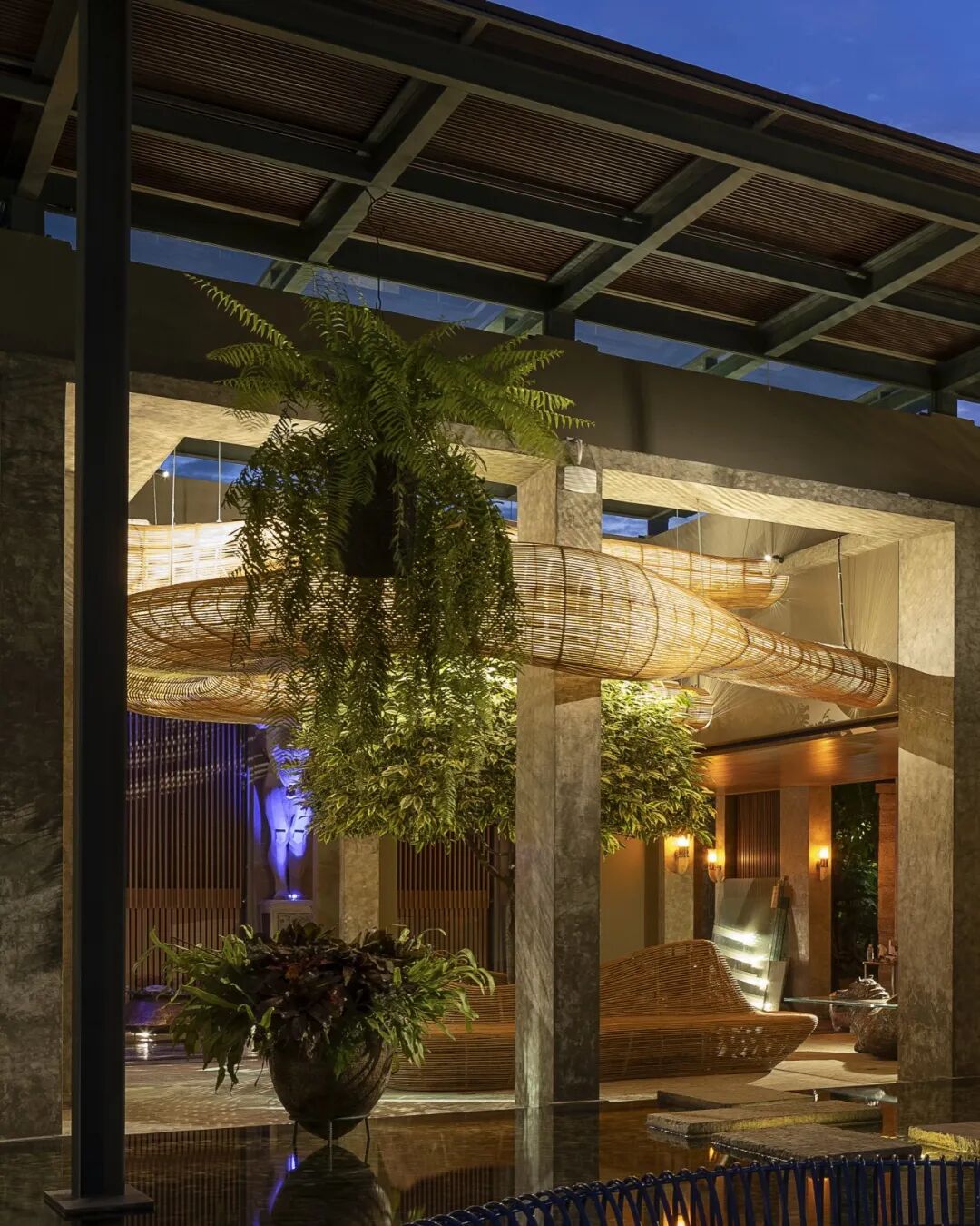 这个项目可以描述为一种流动的状态:无尽的变化和转变,一个连续的运动通道,在自然和藤条的组成中体现的自然形式的指导下。反过来,也可以说,大自然提供了像藤条这样的天然材料的多样性,在东南亚各地都有大量生长。“如果我们能够适应我们的环境,那么实现建筑的可持续发展并不难。当我们可以获得现有我们所需的珍贵材料时,为什么还要使用合成的有毒塑料?”Keane问道。
