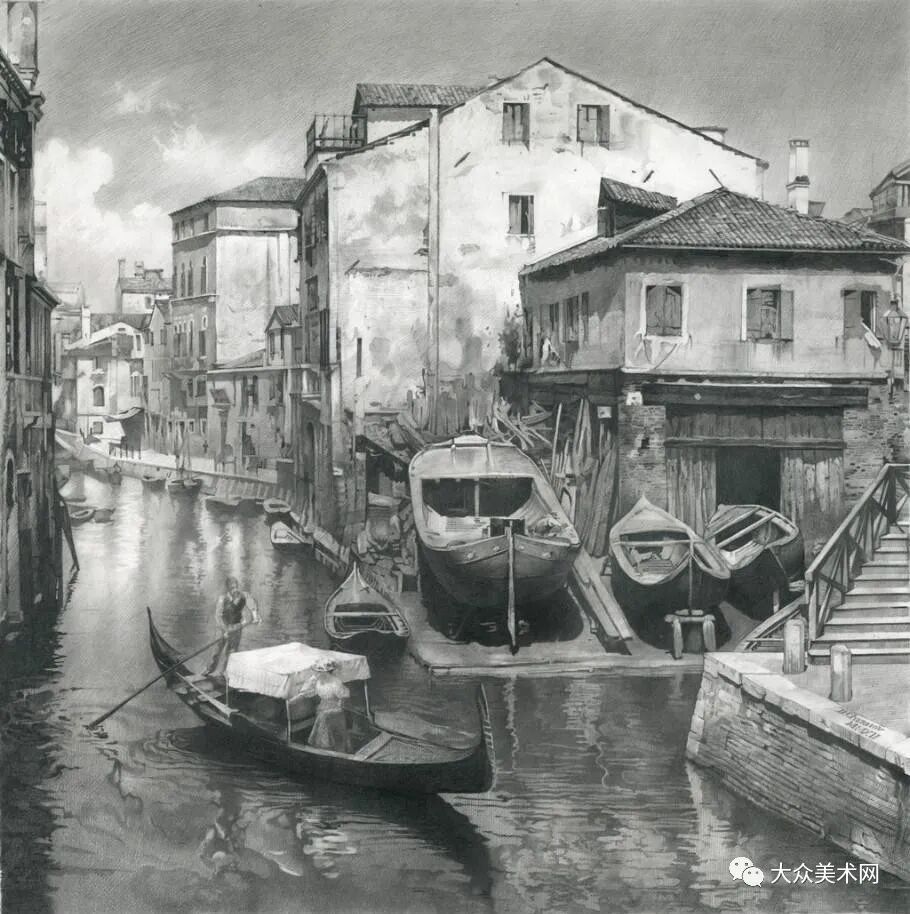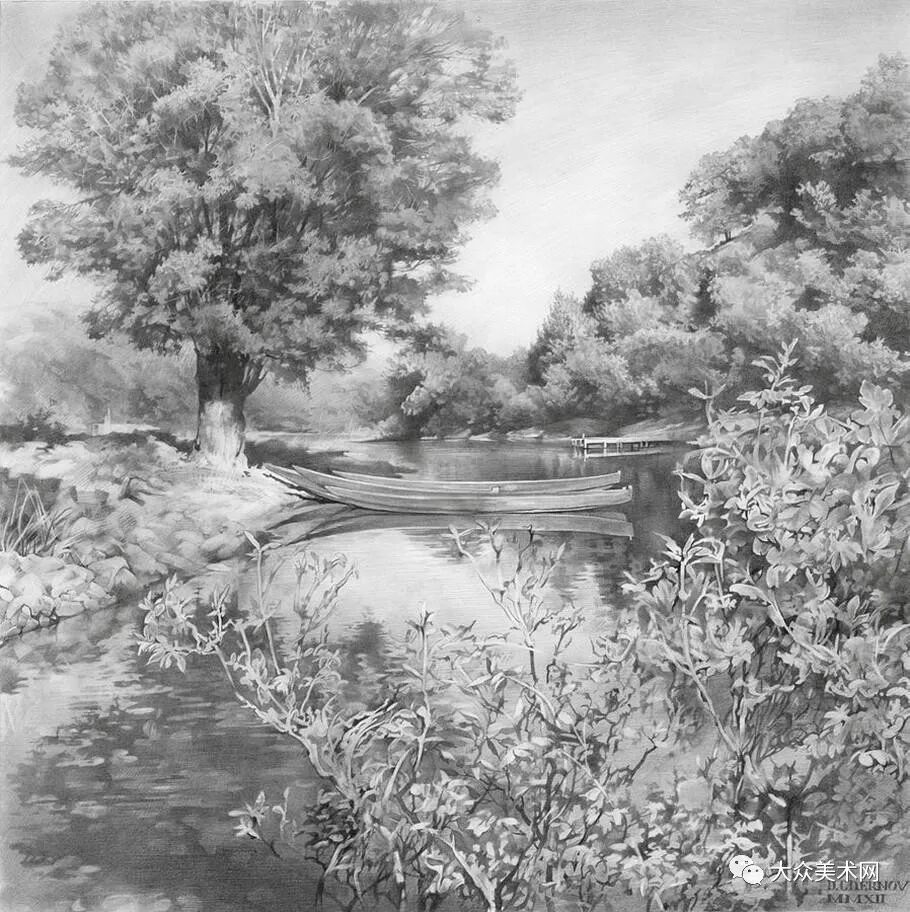 乌克兰画家谢尔诺夫细致入微的美女、风景铅笔画