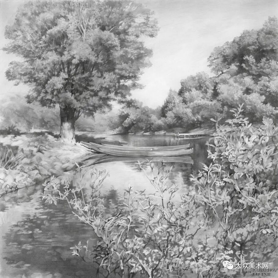 /乌克兰画家谢尔诺夫细致入微的美女、风景铅笔画