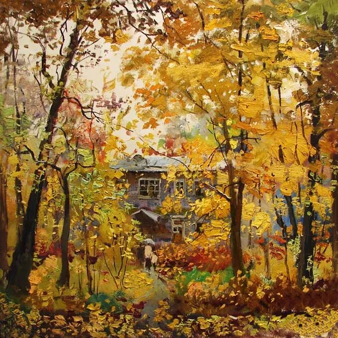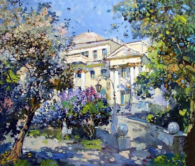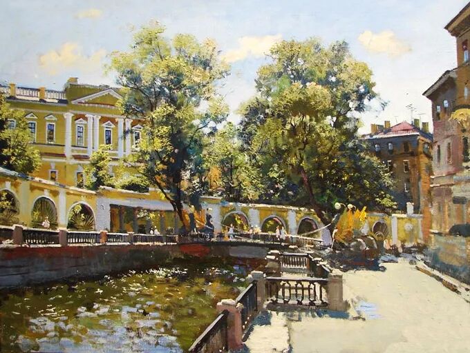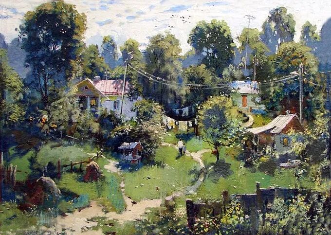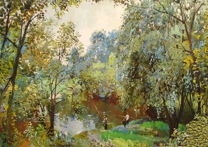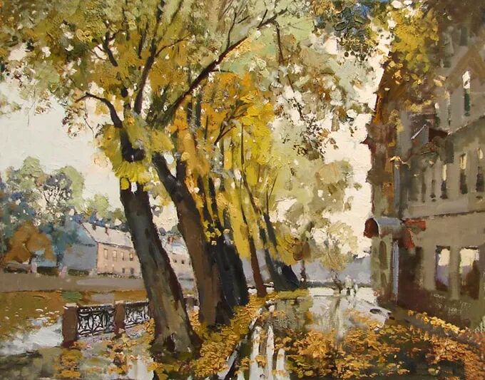 伊万诺维奇描绘的风景画,你会发现阳光的感觉十分强烈,有的画面给人的感觉有点印象派那味,但物体有比较明显。总而言之,跟俄罗斯的著名风景画就希施金的感觉很不同。