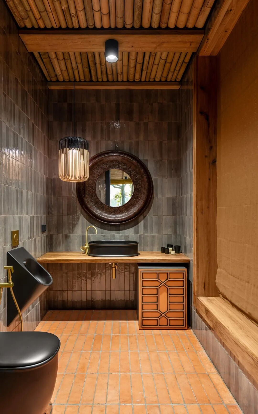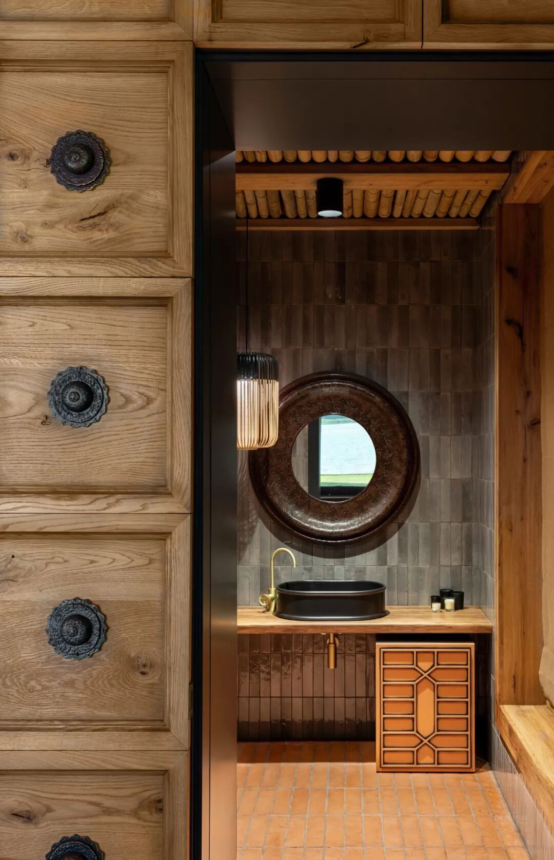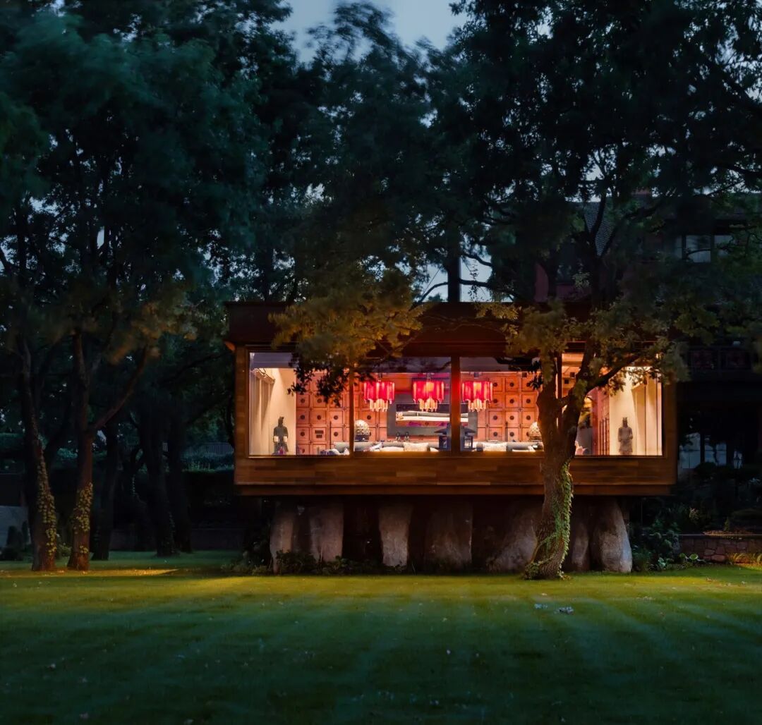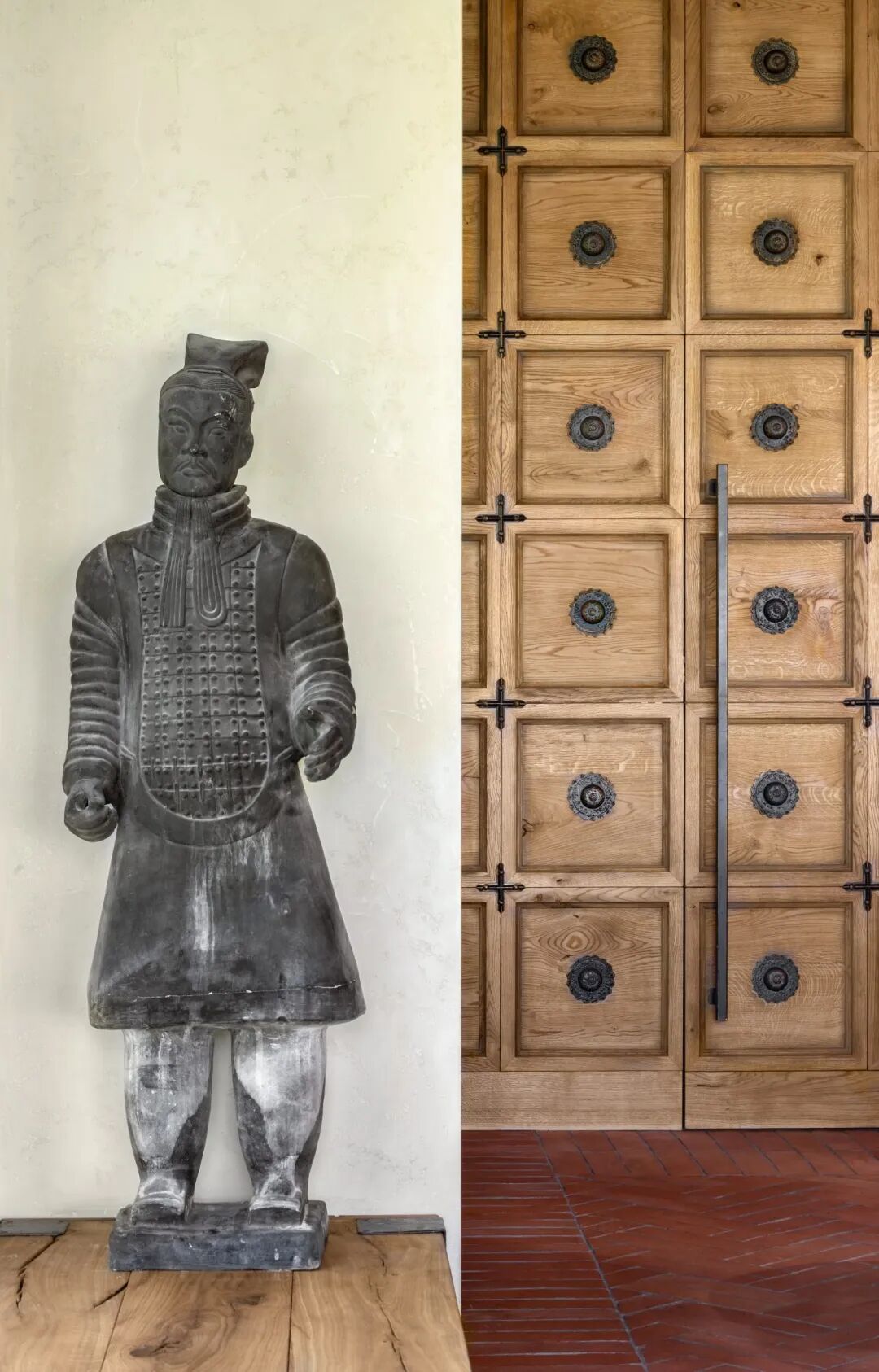 To fully merge with nature, the panoramic windows are oriented to the sunrise so that the morning reminds the secluded owner or a cheerful company of the arrival of a new day. On both sides, the panorama is closed by a pair of Terracotta Warriors designed to accompany the owner to the world of relaxation.