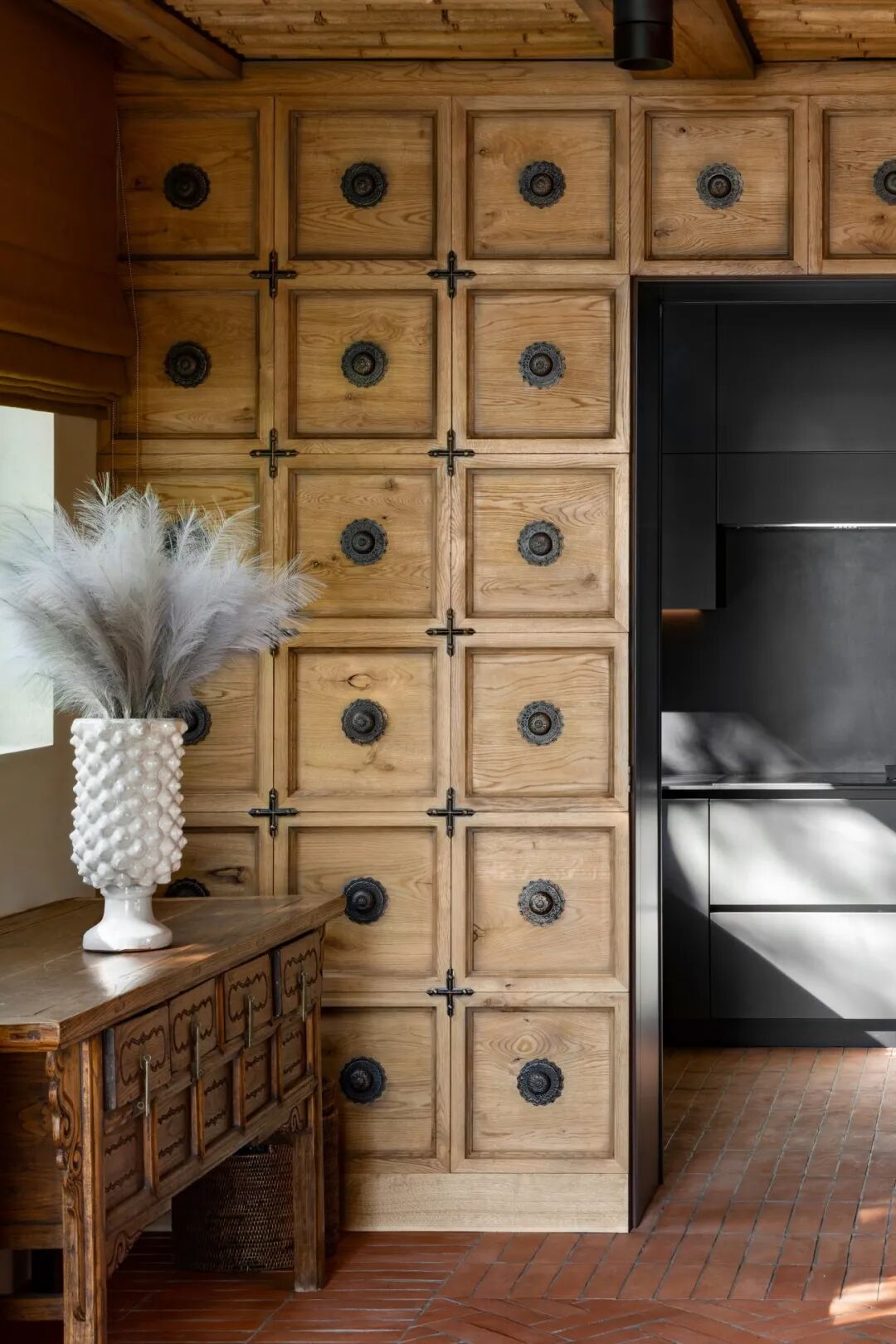 复古的木材被用来做桌子和抽屉柜,这些都是来自于老式木屋的横梁,充满了乌克兰的活力和对家庭的热爱。