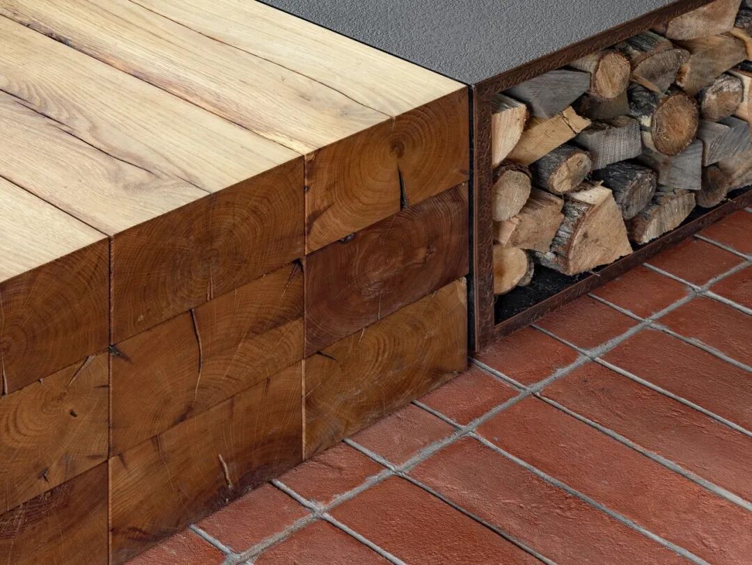 Vintage wood was used for tables and chests of drawers - beams from old wooden houses, saturated with Ukrainian energy and love for one's home.