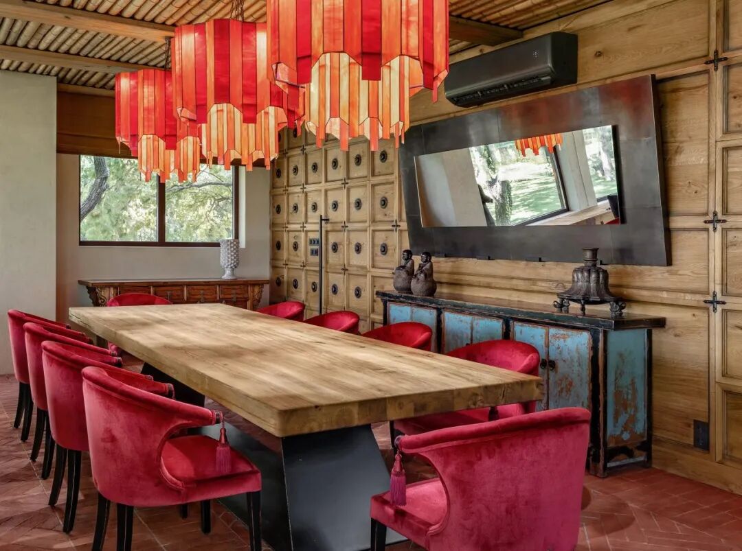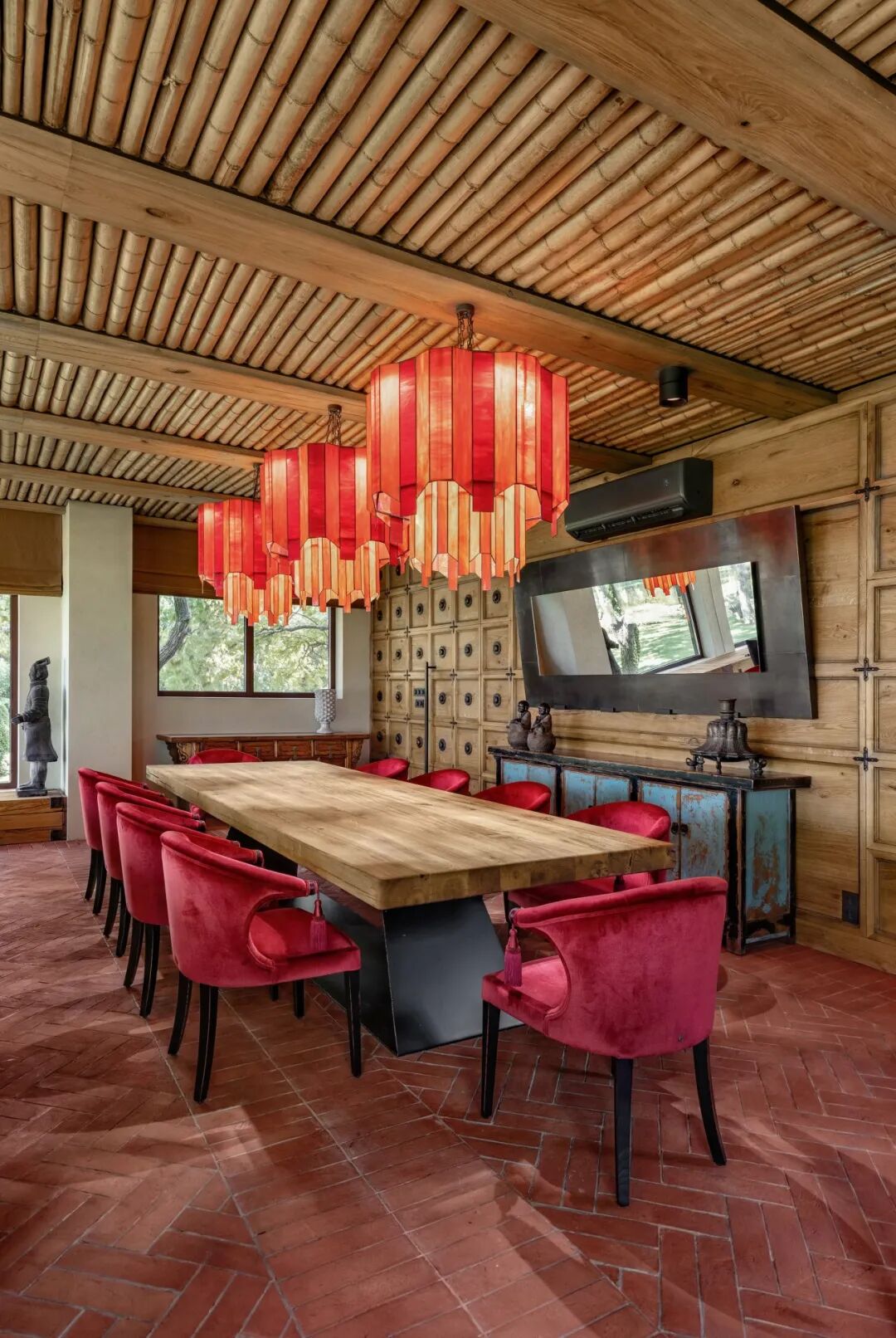 就像中国灯笼的主题一样,明亮、炽热的吊灯给房间带来了火热的气氛。它们是用经典的蒂芙尼技术在乌克兰订购的。