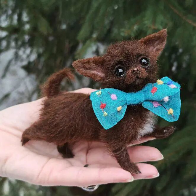 任何手工行业,达到一定高度,都能演变为一种艺术,毛毡这种手工制品也是如此。写实是亚娜·费多罗娃毛毡作品最大的特征,除此之外,她的作品还十分可爱,几乎每一件毛毡动物作品都拥有小配饰,像是小狗穿着衣服、小猫戴着蝴蝶结、鼹鼠戴着帽子,这些配饰都可以自由组装和拆卸,让这些动物毛毡作品的可爱又增添了几分。