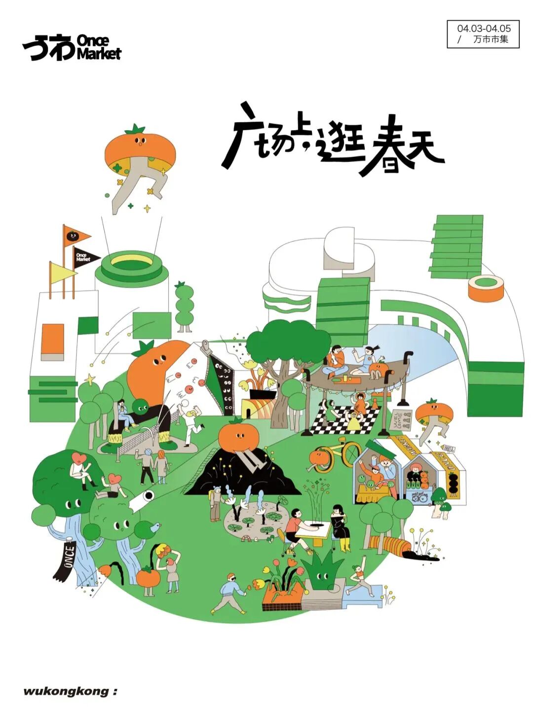今年春天,由建筑与生活方式新媒体“一筑一事”为成都万象城全案策划的市集IP“万市Once Market”,以第一场“广场上,逛春天”温暖开市,来自全国70+个优秀品牌共聚一起,内容涵盖多样化的贩售品类和系列互动体验内容,给大家带去了一个难忘又欢快的春日记忆。