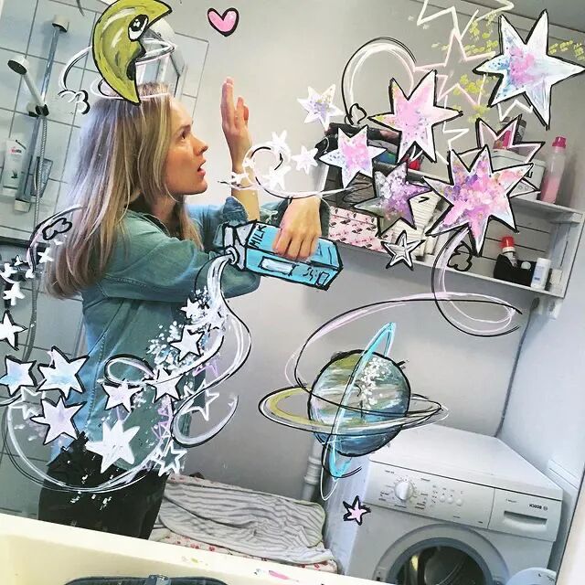 很多人看完海琳·梅尔达尔的趣味作品,都被她的想象力以及动手能力折服了,拿一块镜子,就能给自己的照片手动加特效,真的是太会玩了。接下来,我们就一起欣赏一下这位在镜子上进行涂鸦的艺术家,创作的趣味作品吧。
