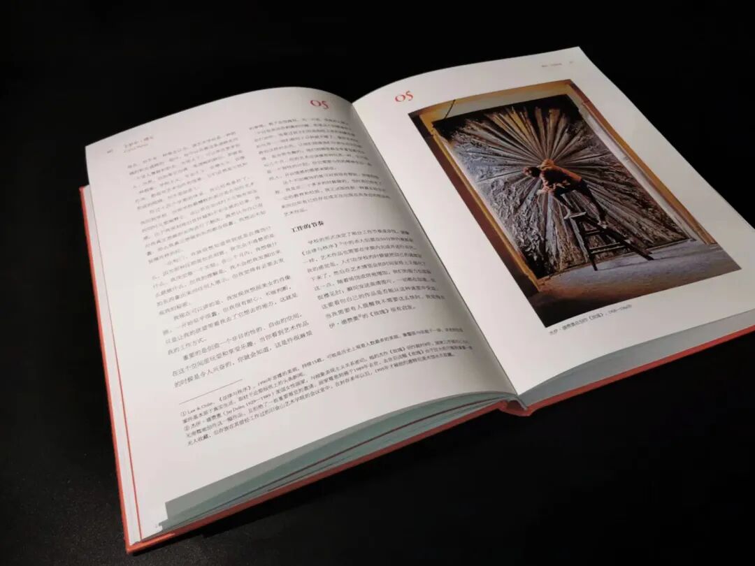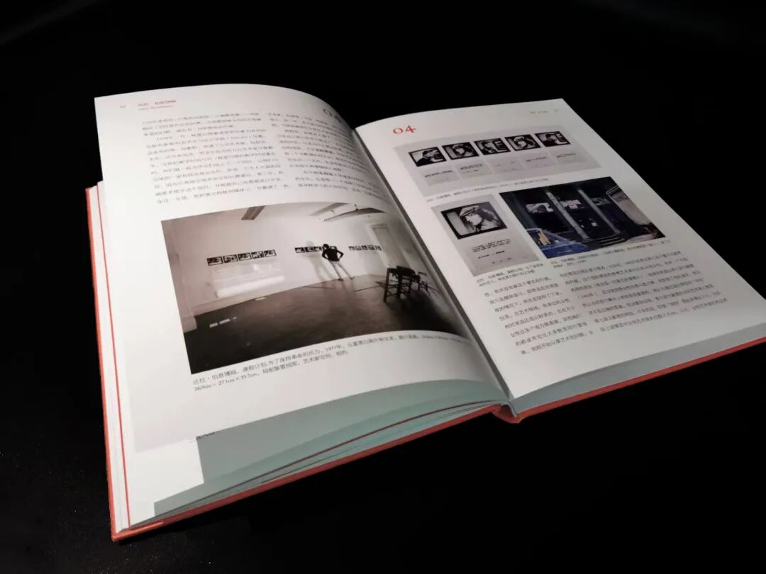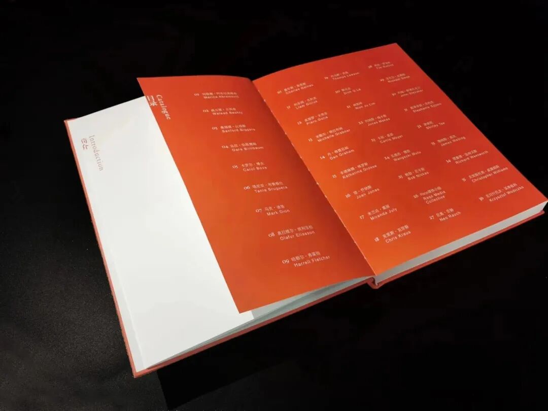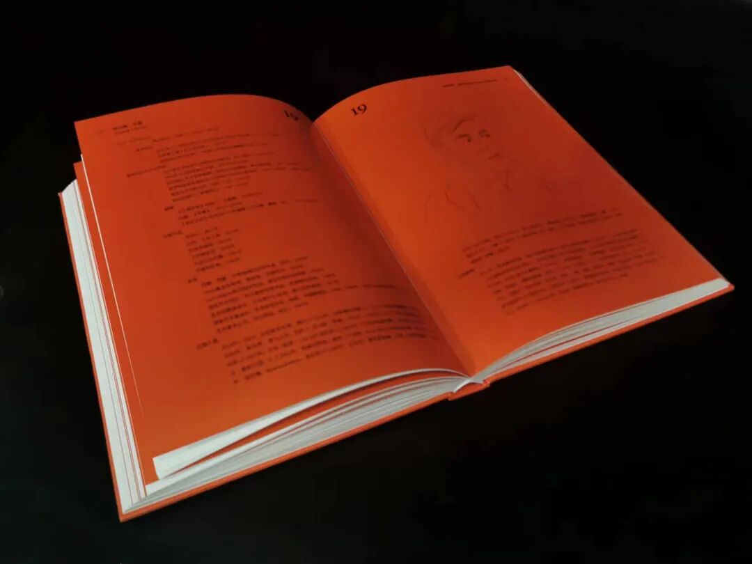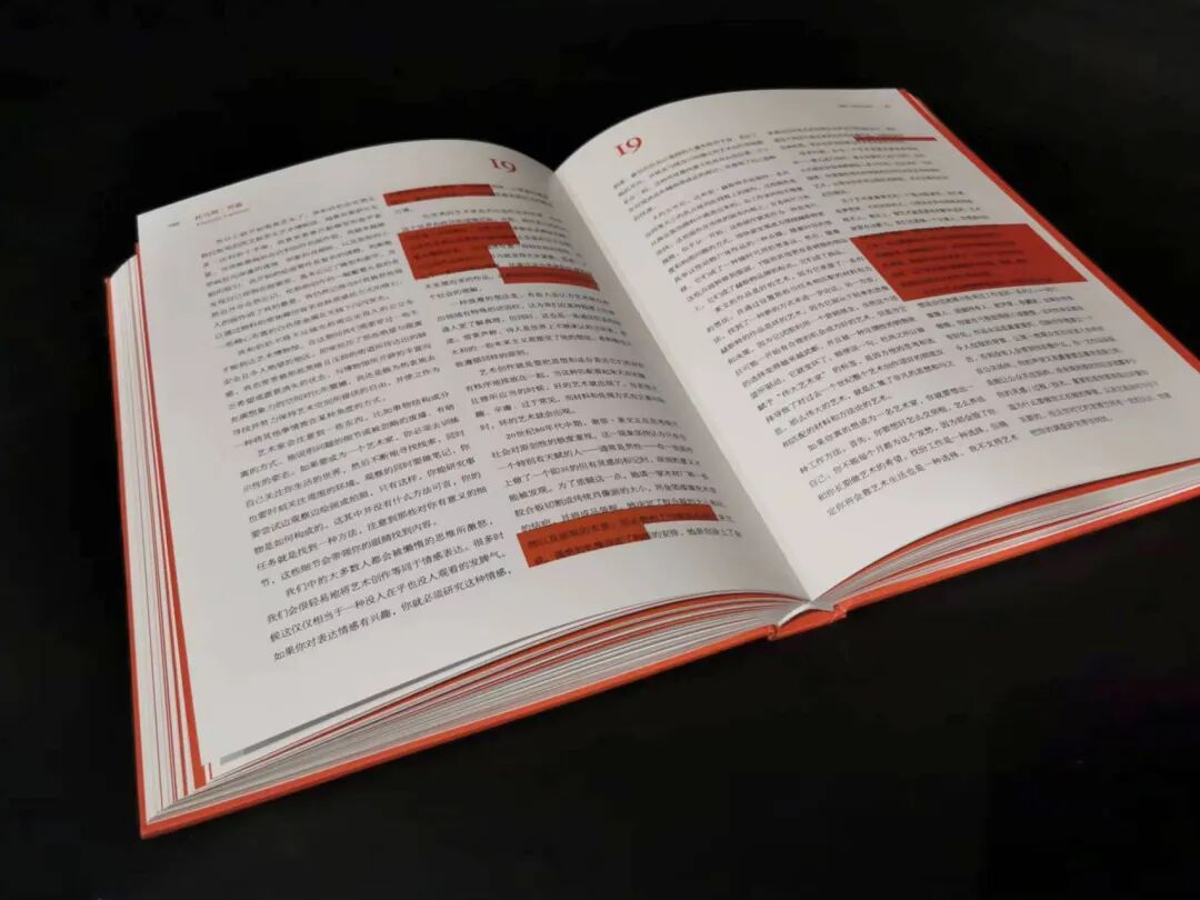 内文选用120克爱尔丽莎纸,读者触摸更柔软,质感一流,全书橘红色设计元素贯穿始终,前后呼应,一气呵成。书脊部分文字说明横跨封底,使全书三维阅读空间进一步增强,呈现了书籍设计师对当代艺术活跃状态特有的个性表达,尽显当代艺术极致的设计美学。