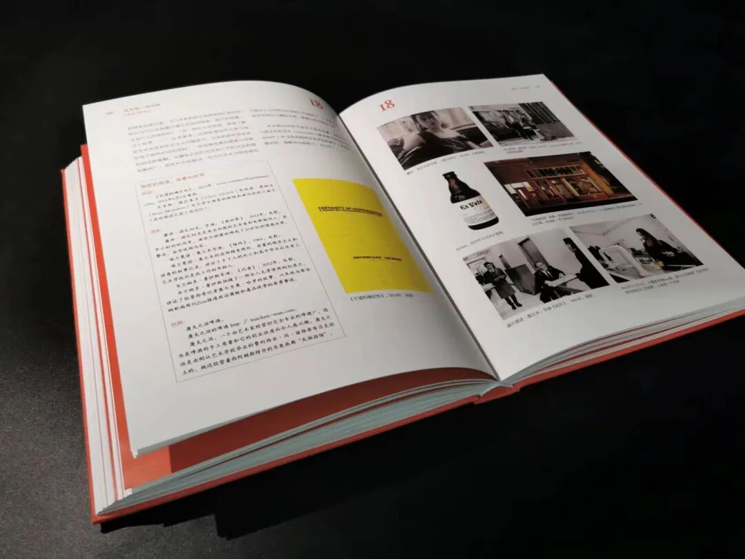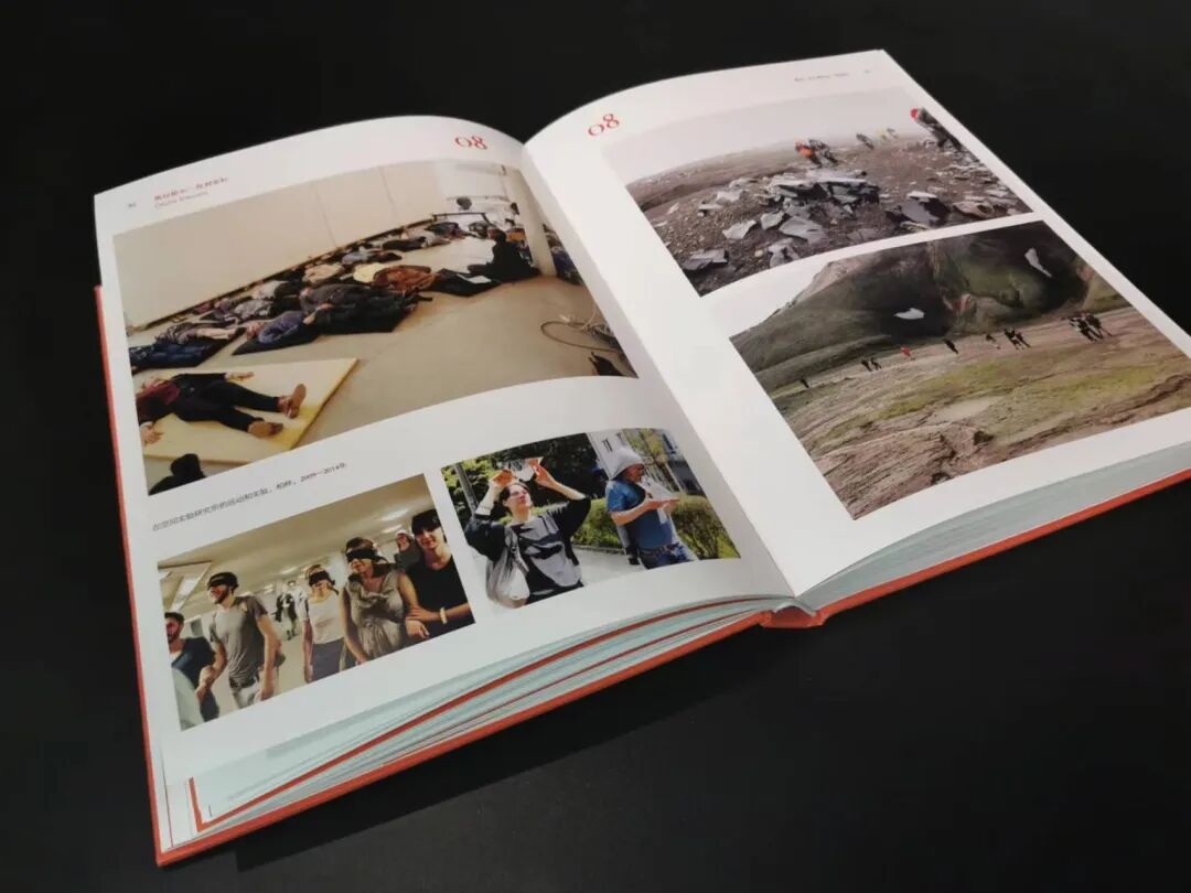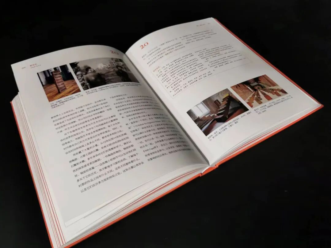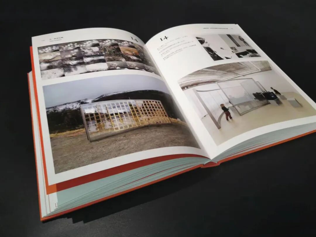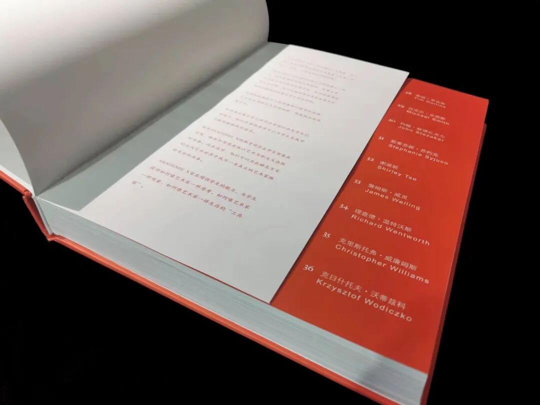 内文选用120克爱尔丽莎纸,读者触摸更柔软,质感一流,全书橘红色设计元素贯穿始终,前后呼应,一气呵成。书脊部分文字说明横跨封底,使全书三维阅读空间进一步增强,呈现了书籍设计师对当代艺术活跃状态特有的个性表达,尽显当代艺术极致的设计美学。