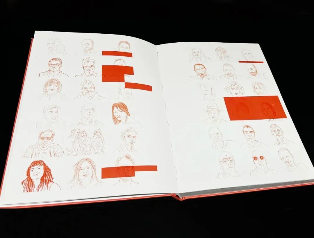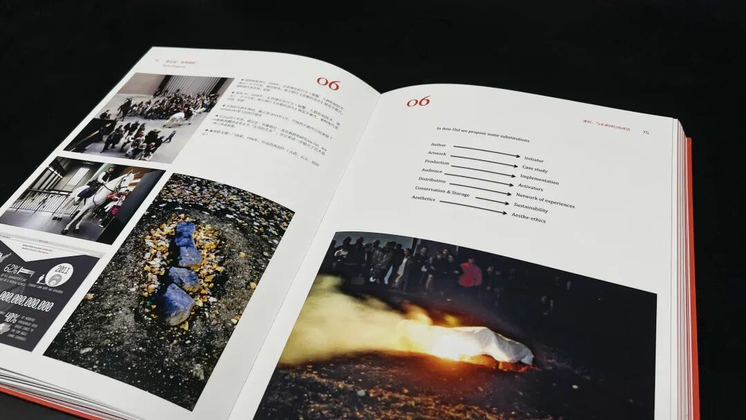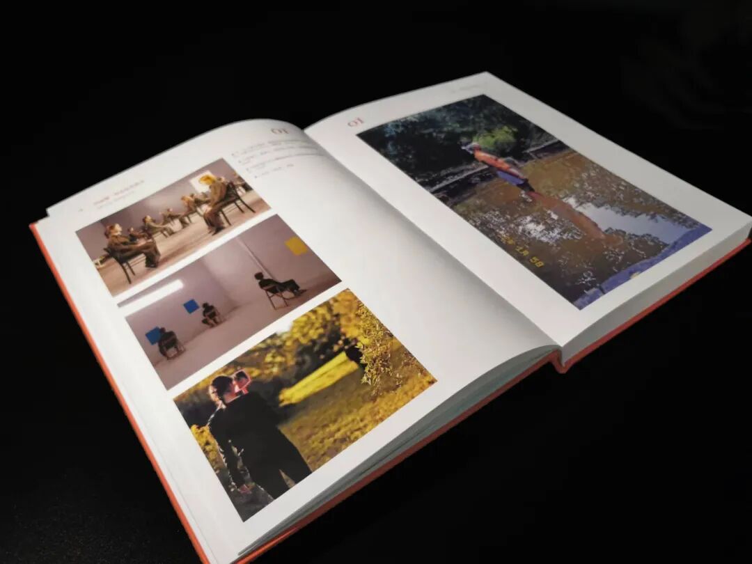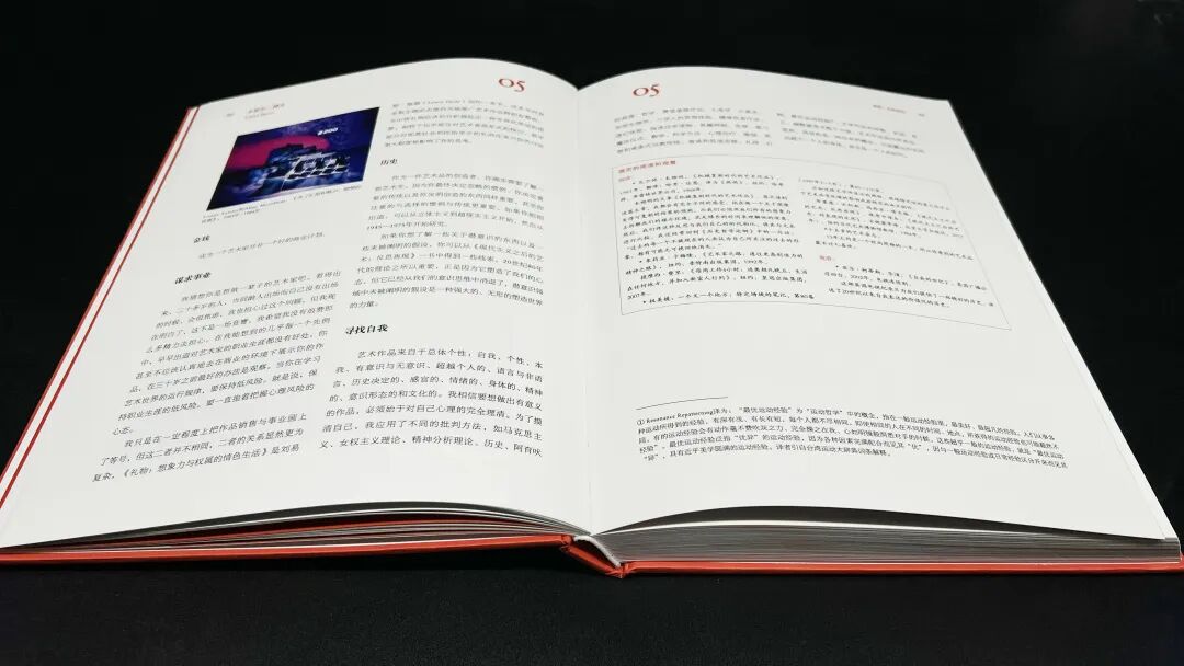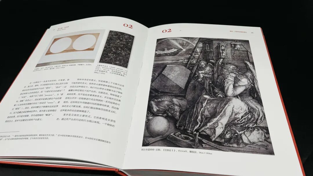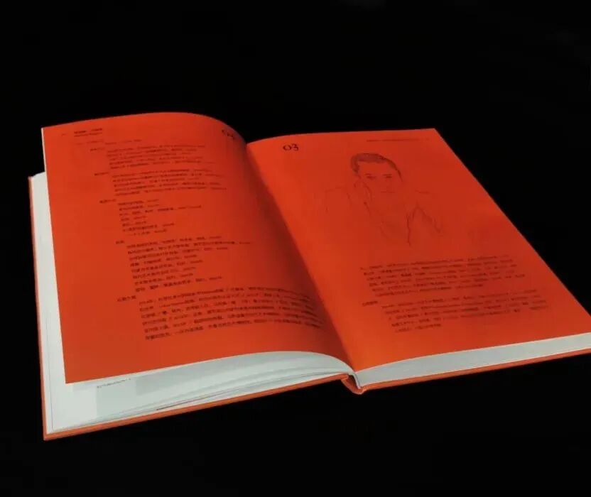 内文选用120克爱尔丽莎纸,读者触摸更柔软,质感一流,全书橘红色设计元素贯穿始终,前后呼应,一气呵成。书脊部分文字说明横跨封底,使全书三维阅读空间进一步增强,呈现了书籍设计师对当代艺术活跃状态特有的个性表达,尽显当代艺术极致的设计美学。