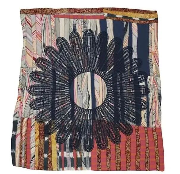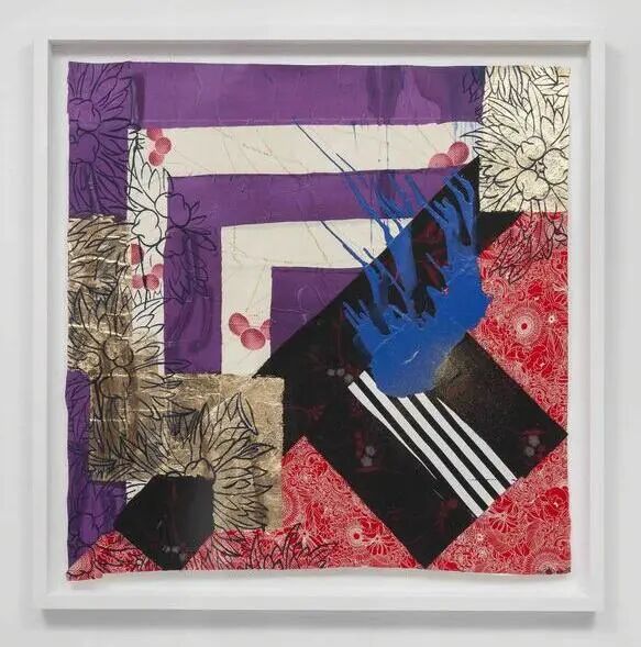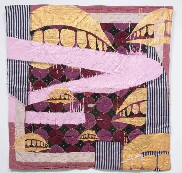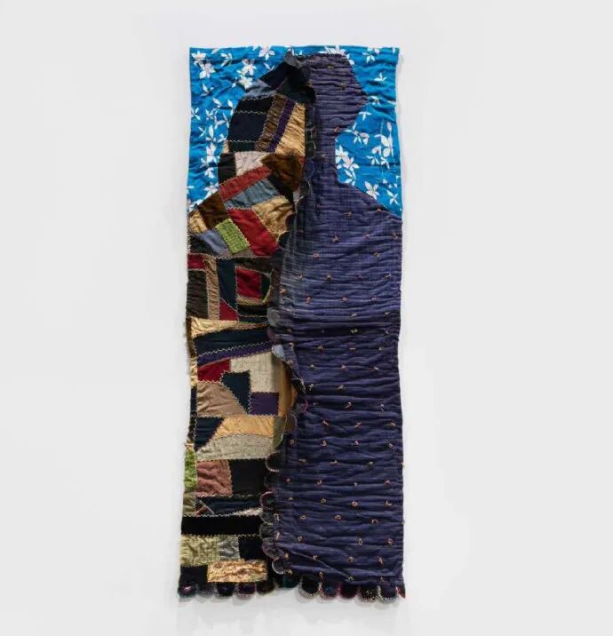 “编码”系列中,桑福德·比格斯将各类物体和材料组合在作品中。以古董手工被褥为基底,将多种织物拼接在一起,创作出完整的作品。独特的材料给予了作品来自十九世纪前的图像符号,展现出被褥蕴含的故事性。