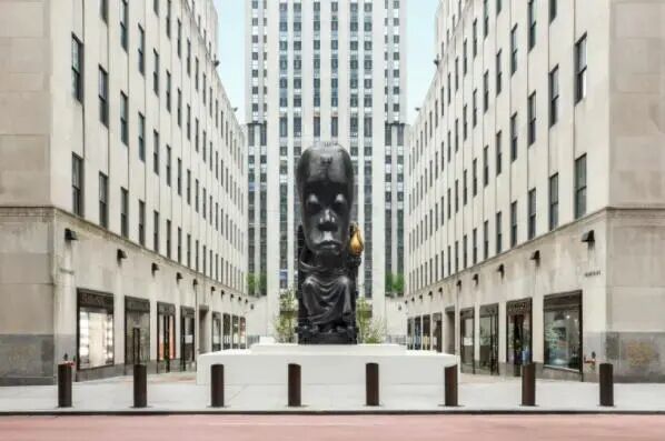 这座不朽的青铜雕塑《神谕》高25英尺,重达15000多磅,是艺术家在洛克菲勒中心举办的公共艺术展的核心。伴随着艺术家的奇美拉(Chimera)雕塑系列以及其他在整个建筑群中都能看到的独特装置,艺术家将非洲和欧洲的艺术风格结合起来,反映了遍及世界范围内的全球化交流和互鉴。在承认过去的同时,提醒着数百万市民非洲文化仍在对纽约市持续产生着巨大影响。