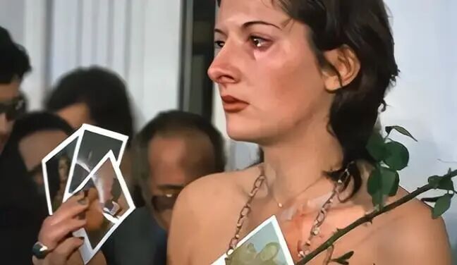 1972到1975年,玛丽娜先后创作了11个行为艺术,从《节奏10》到《节奏0》。每一个都让观看者直面触目惊心的场面,更是对玛丽娜身体的摧残。