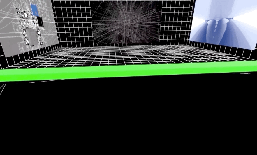 分号 C 的工作室坐落于创意园区。在工作室的展厅,分号 C 通过投影和 VR 可穿戴设备,在现有空间之上又延展出一个完全数字化的世界,数字作品就在数字世界里面进行展出。带上 VR 头盔,就能进入这个世界。