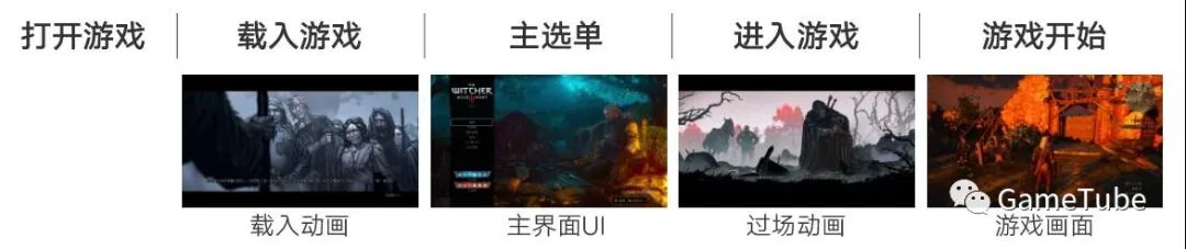 在玩家进入巫师3世界的过程中,通过两个阶段的动画介绍,回顾剧情。这两个阶段的动画具有不同的内容特点,在载入游戏的动画中,动画与字幕所展示的是世界整体的历史进度,如大帝的军团攻势,某地的人民饥荒等;而进入游戏的过场动画则更细致的回顾了杰洛特本人的剧情与当前任务的背景。如在某指挥官的帮助下,杰洛特得知了叶奈法的下落等。