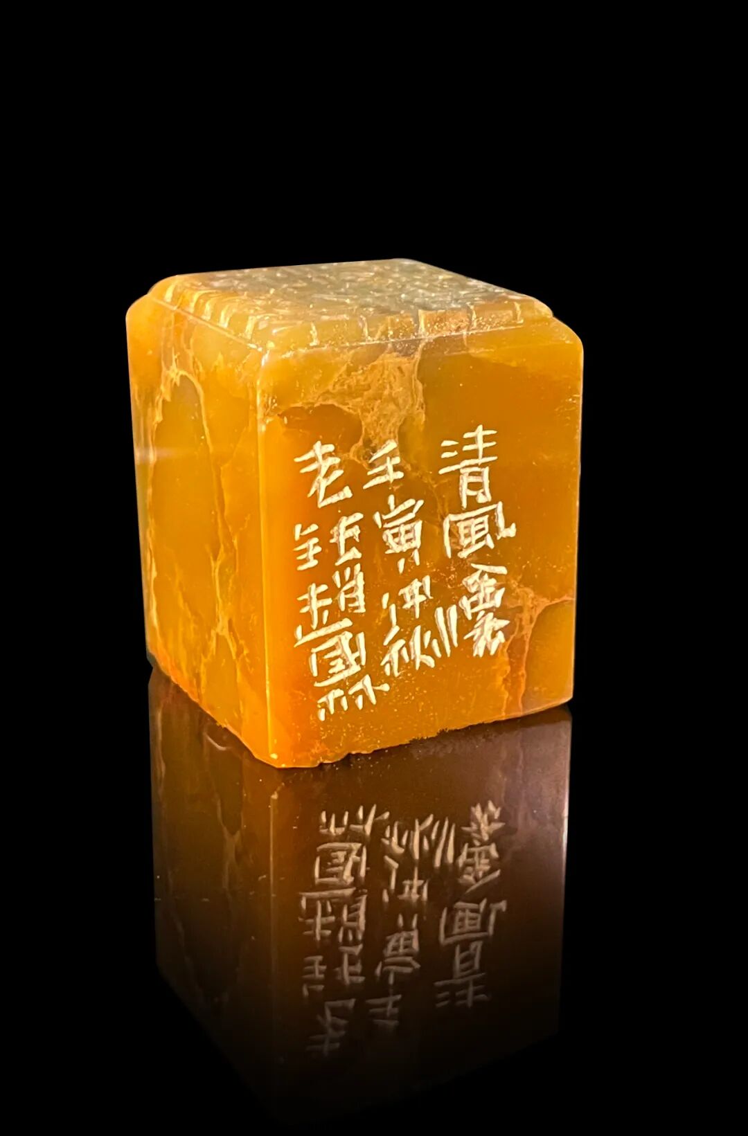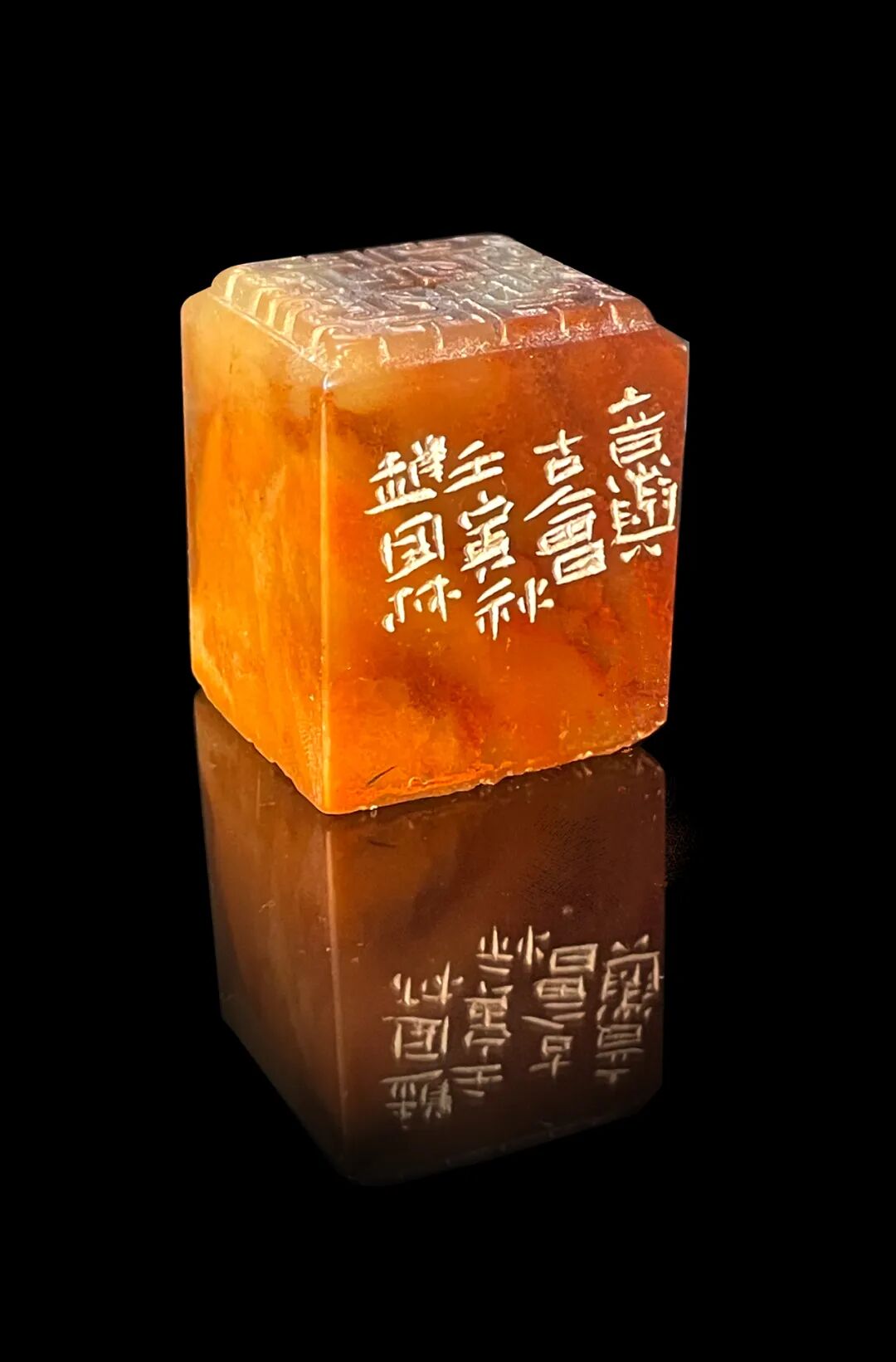 材质 | 精品老挝芙蓉体巧色雕灵芝钮连珠印
