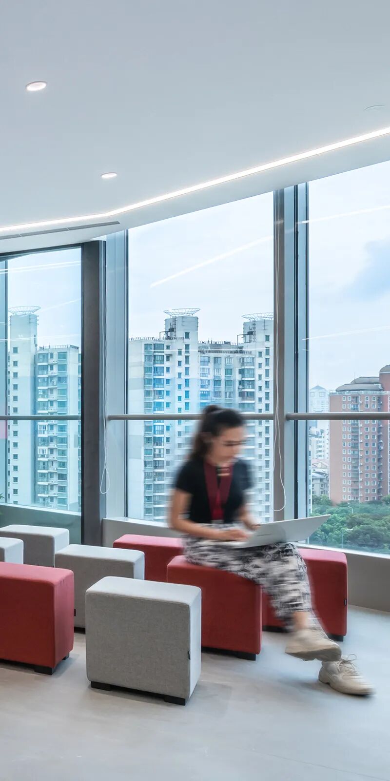 在穆氏为GLP上海数据中心团队打造的全新办公空间内,像素以各种组合形式贯穿其中,这不仅寓意着普洛斯数据业务助力互联互通新世界的科技特性,同时也为空间增添了十足动感与无限新意。
