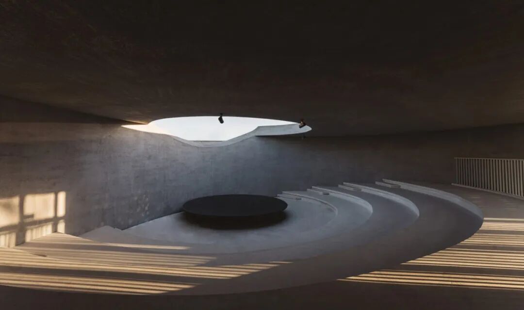 1300平方米的文化中心内的各种功能空间被排列成一系列独立的元素,由柔和弯曲的墙壁和走廊连接起来。俞挺将连接不同空间的边界墙描述为“一条移动的墨线”,有如中国绘画中使用的笔触。