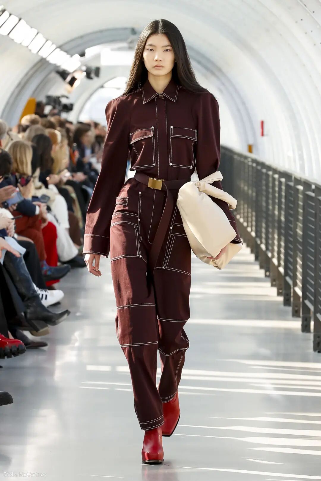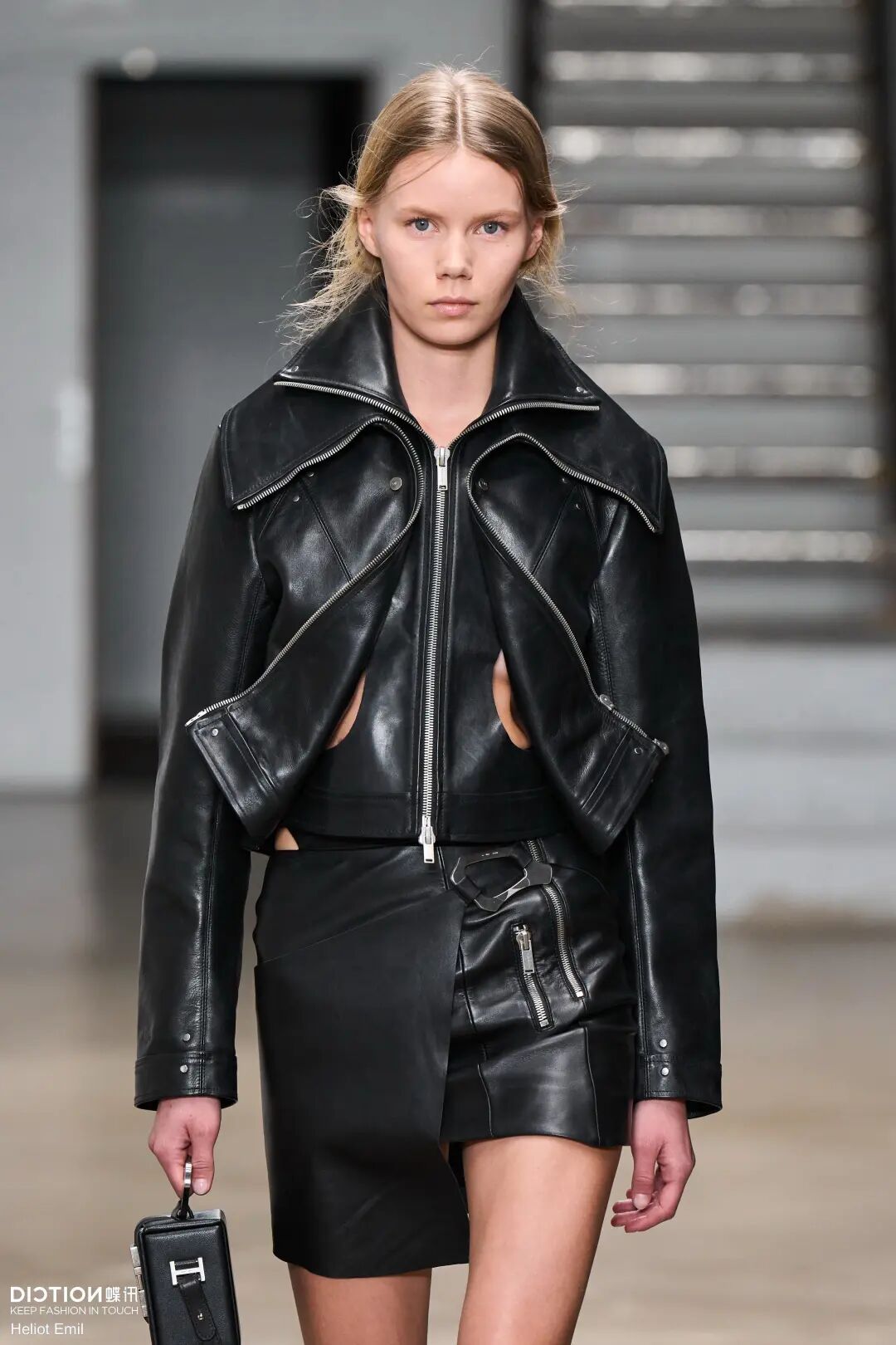 金属质感的拉链自带冷感气场,严丝合缝的品质带给它一种严谨与理性,纤细的线条感与金属相结合是非常具有可玩性的时尚元素,组合拉链以及开口轨迹的设计是本次秀场的重点。