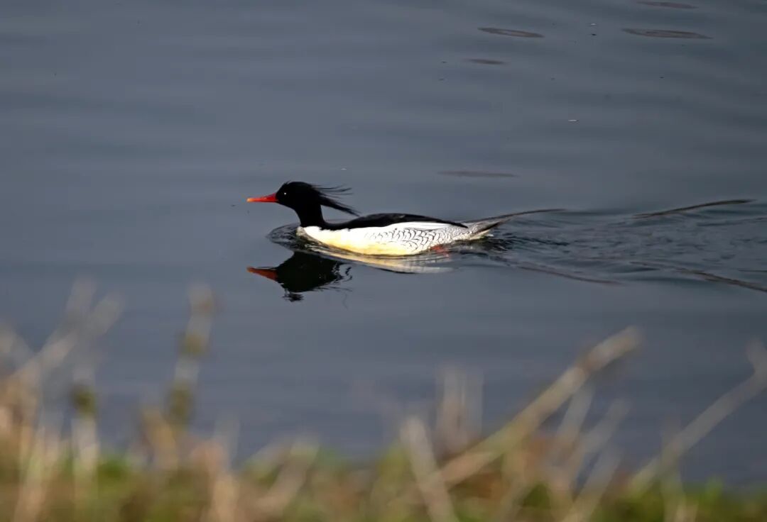 红胸秋沙鸭不仅可以在淡水环境中生活,更喜爱咸水湖和近海生境,又被称作“海秋沙”,形象而准确。