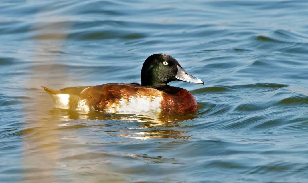 大部分潜水鸭体型要略小于浮水鸭,我国常见的潜鸭有红头潜鸭、赤嘴潜鸭、凤头潜鸭、白眼潜鸭、青头潜鸭等。其中,青头潜鸭在去年刚升级为国家Ⅰ级重点保护野生动物。