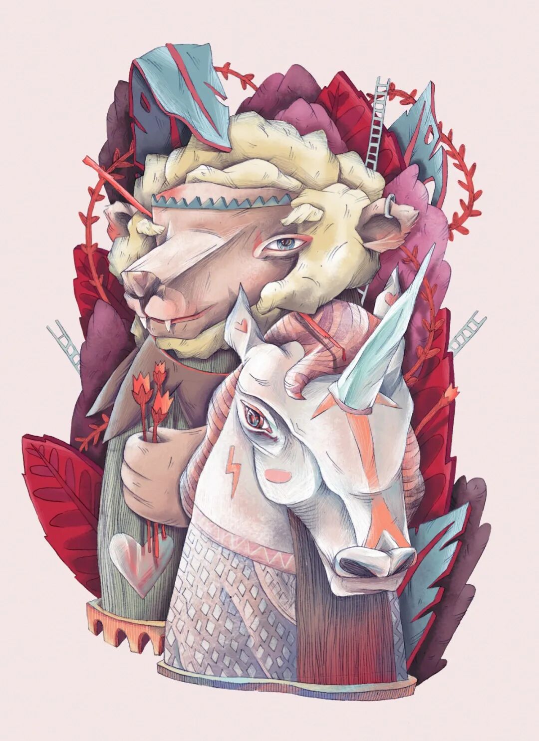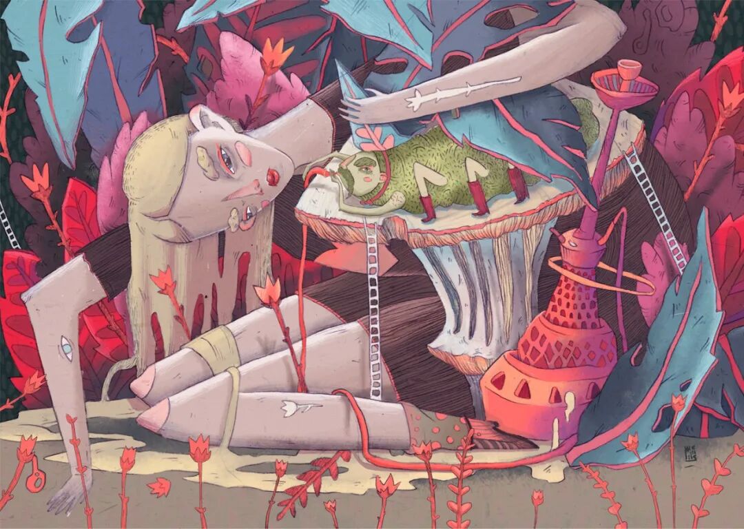 Liza Burlutskaya的插画风格方面比较细腻、丰富。有些画大胆夸张、非常有张力,充满了男性的刚气,有一些画掺杂着女性的柔美感。