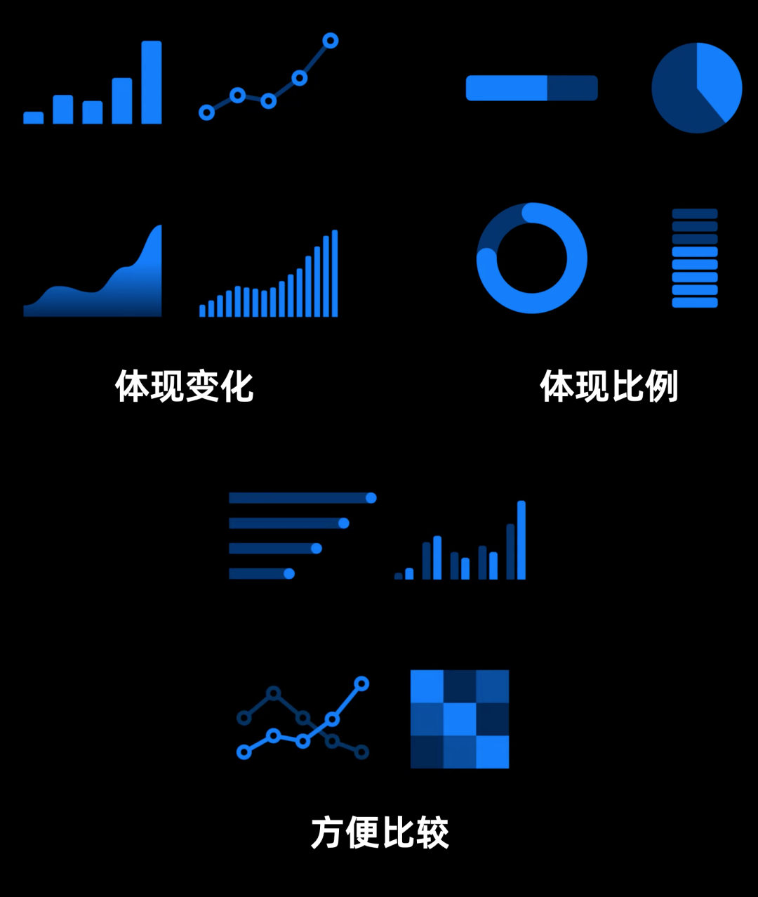 体现变化:展示历史数据、或预测数据将来的走势时,使用图表能够生动地展示数据的变化。