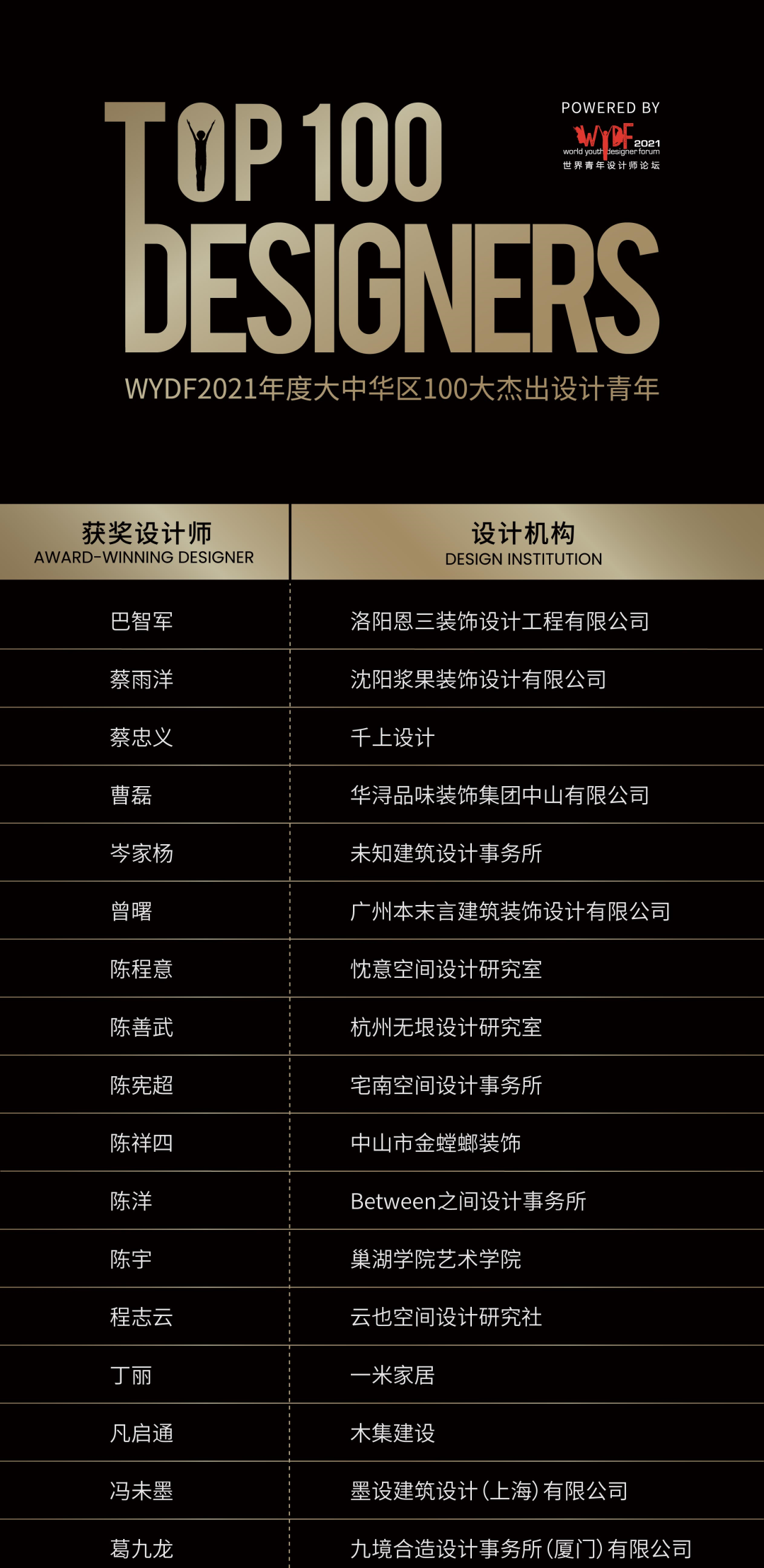 /WYDF2021年度大中华区100大杰出设计青年评选公布!