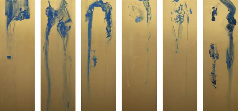Azurite on gold leaf, mounted on 6 individual panels