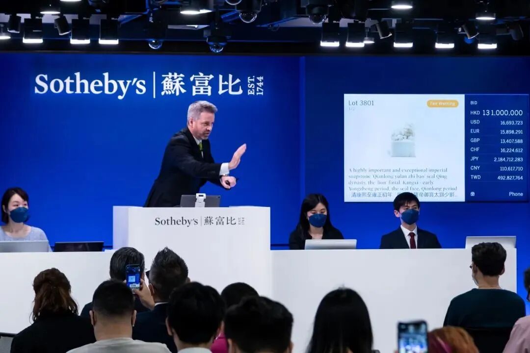 在最近举行的香港春季拍卖会上,苏富比创下其史上第二高的单季拍卖成交额38.52亿港元。几件十分罕见的艺术精品拍到了惊人天价:一颗15.10克拉蓝钻成交于4.51亿港元;一幅张大千青绿山水绘画作品《仿王希孟千里江山图》拍出3.7亿港元,创出张大千作品史上最高拍卖价;一方乾隆最贵重宝玺“乾隆御览之宝”以1.53亿港元卖出。