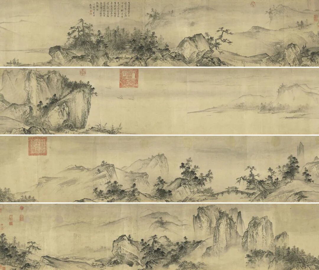 《溪山清远图》 纸本 墨笔 | 46.5×889.1cm